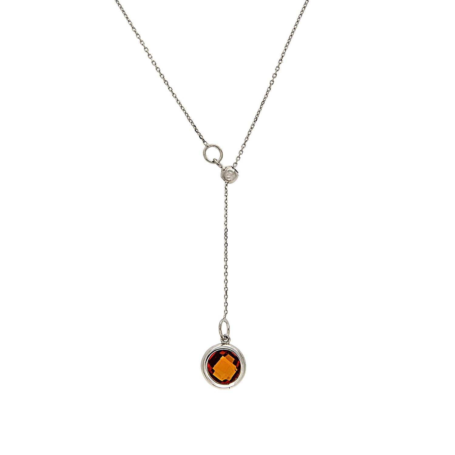 Μοντέρνα αλυσίδα λαιμού από λευκόχρυσο 14 καρατίων. Περιέχει μία πέτρα ζιργκόν.
