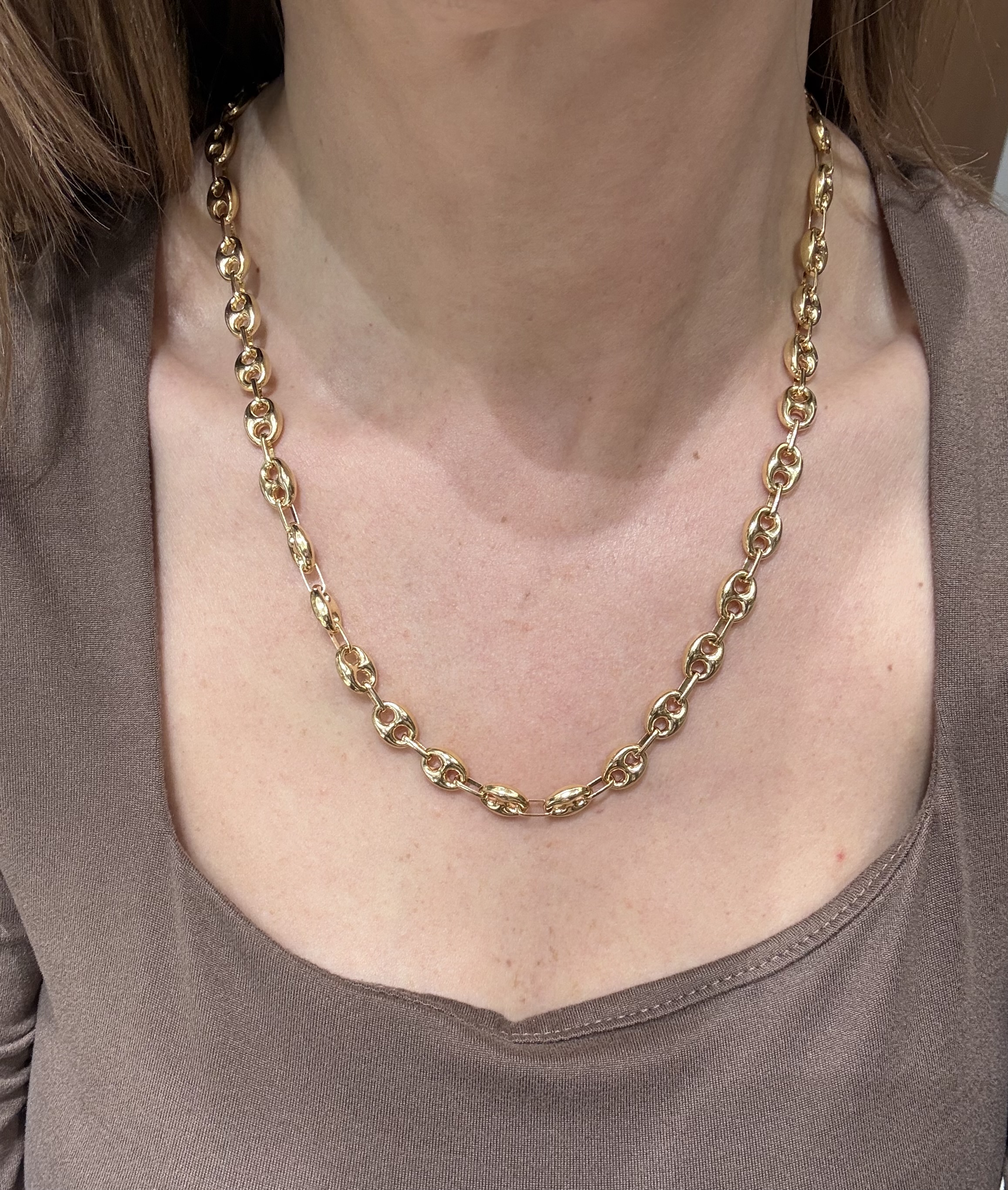 Εντυπωσιακή αλυσίδα για το λαιμό από κίτρινο χρυσό 14 καρατίων (585) με ιδιαίτερους οβάλ κρίκους και γυαλιστερό φινίρισμα.
