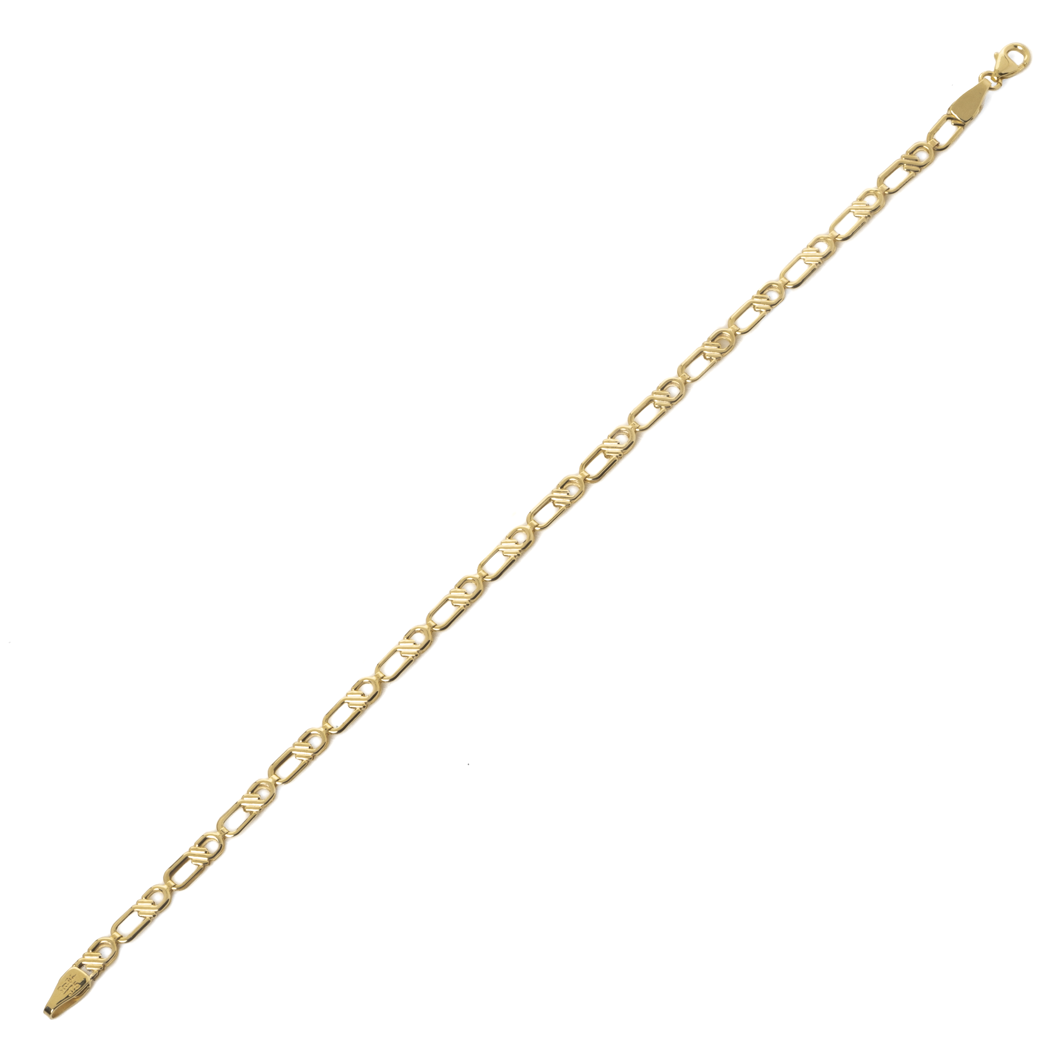 Κλασικό βραχιόλι από κίτρινο χρυσό 9 καρατίων (375) με κρίκους με ιδιαίτερο σχέδιο. Το μήκος του βραχιολιού είναι μεγάλο και κατάλληλο για ανδρικό καρπό.