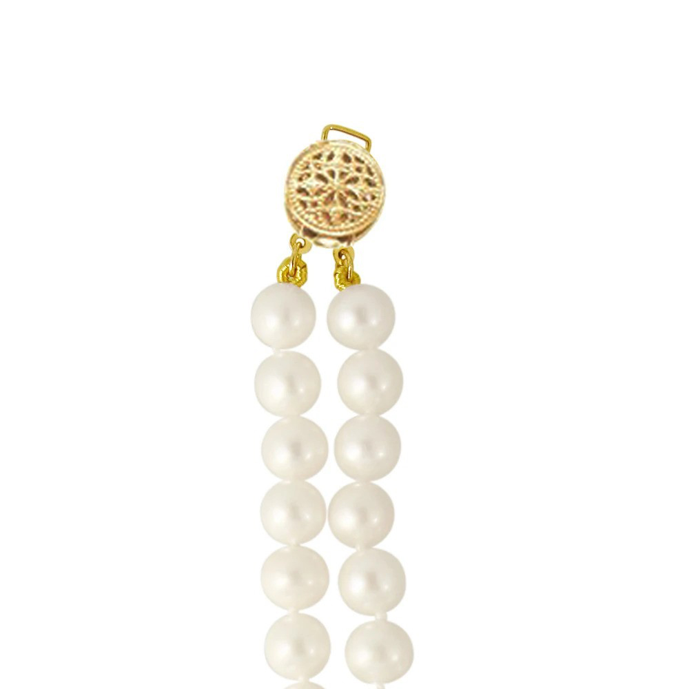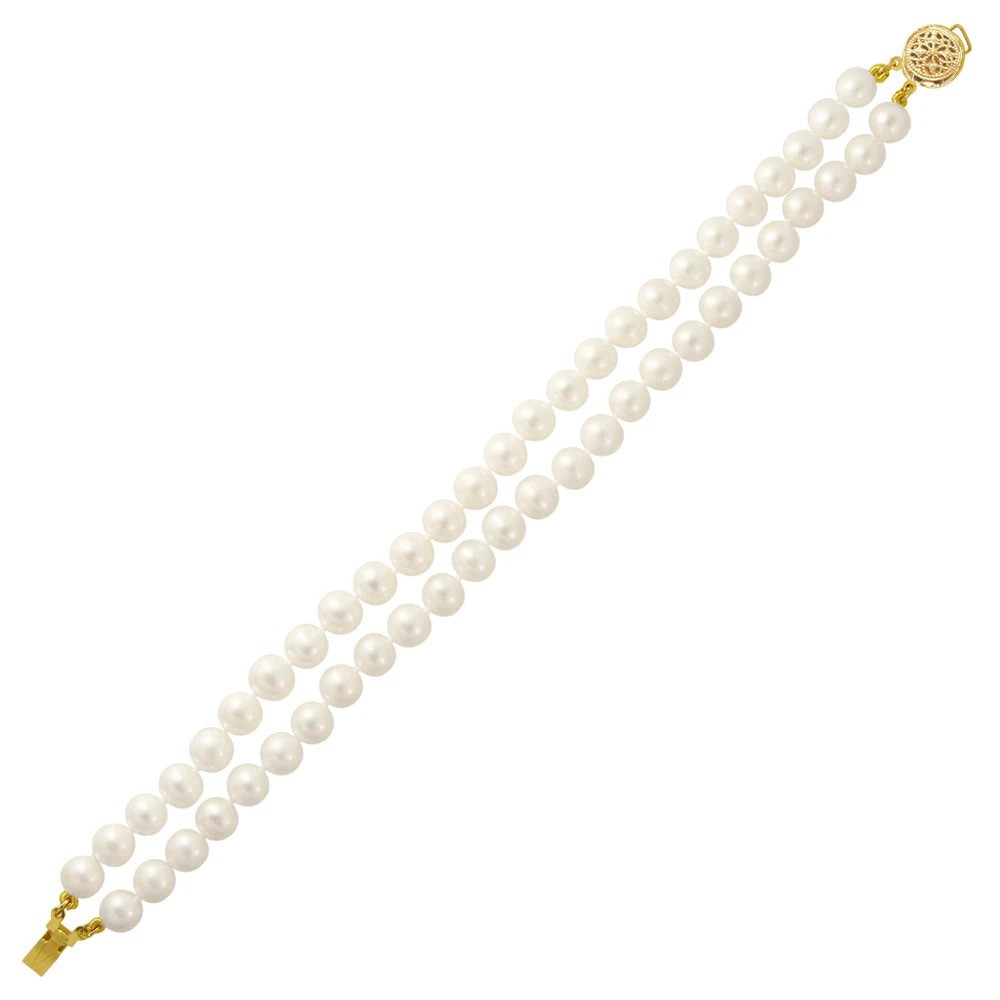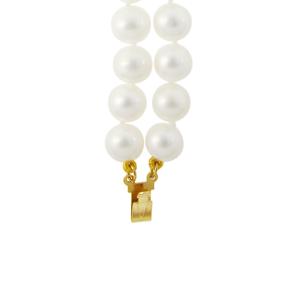 Βραχιόλι με δύο σειρές λευκά μαργαριτάρια 7-7.5 χιλιοστών από κίτρινο χρυσό 14 καρατίων (585) και χρυσό κούμπωμα.