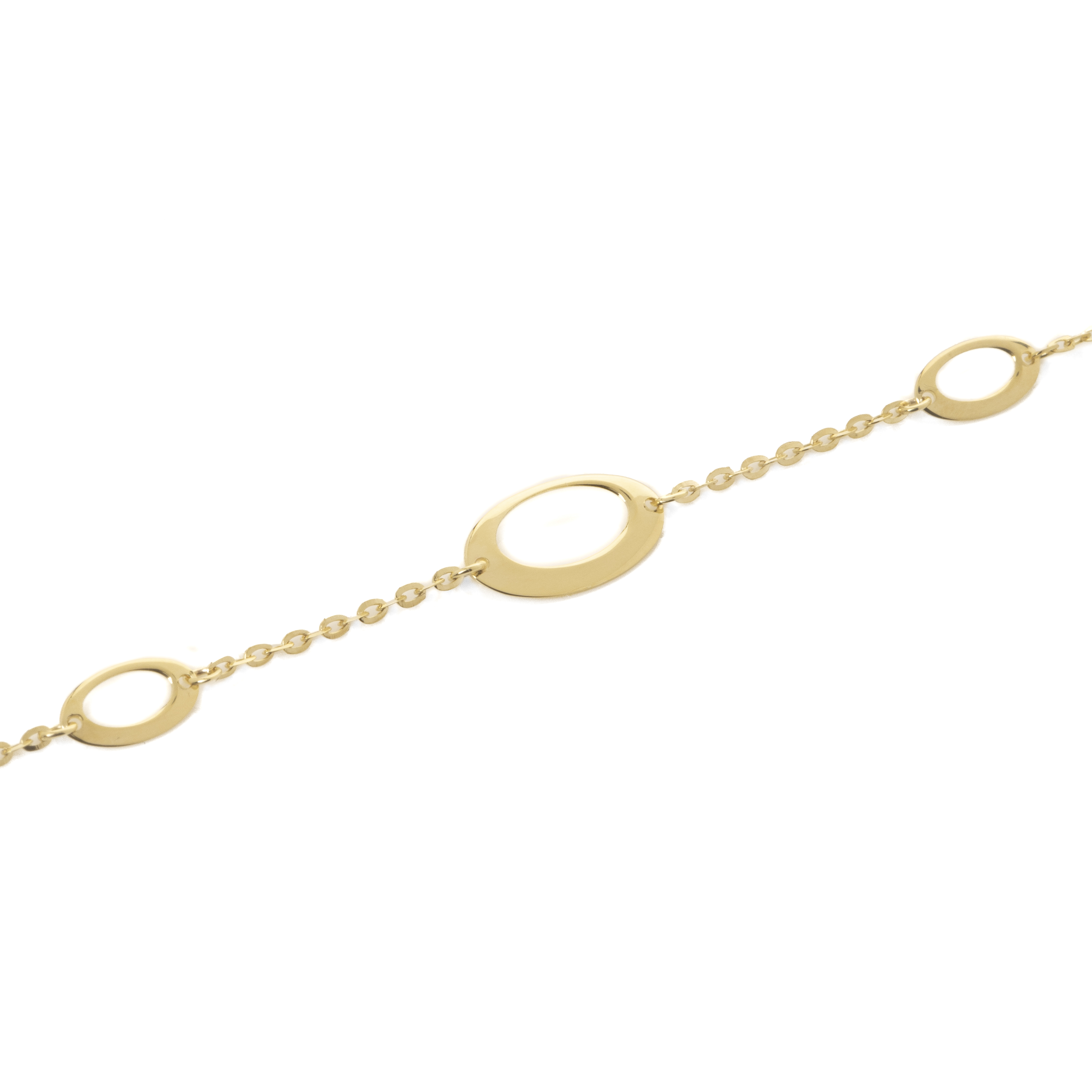 Μοντέρνο, minimal, γυαλιστερό (χωρίς κανένα ματ στοιχείο) βραχιόλι από χρυσό 14 καρατίων (κ 585) με charm τέσσερις λευκόχρυσες γυαλιστερές καρδιές,