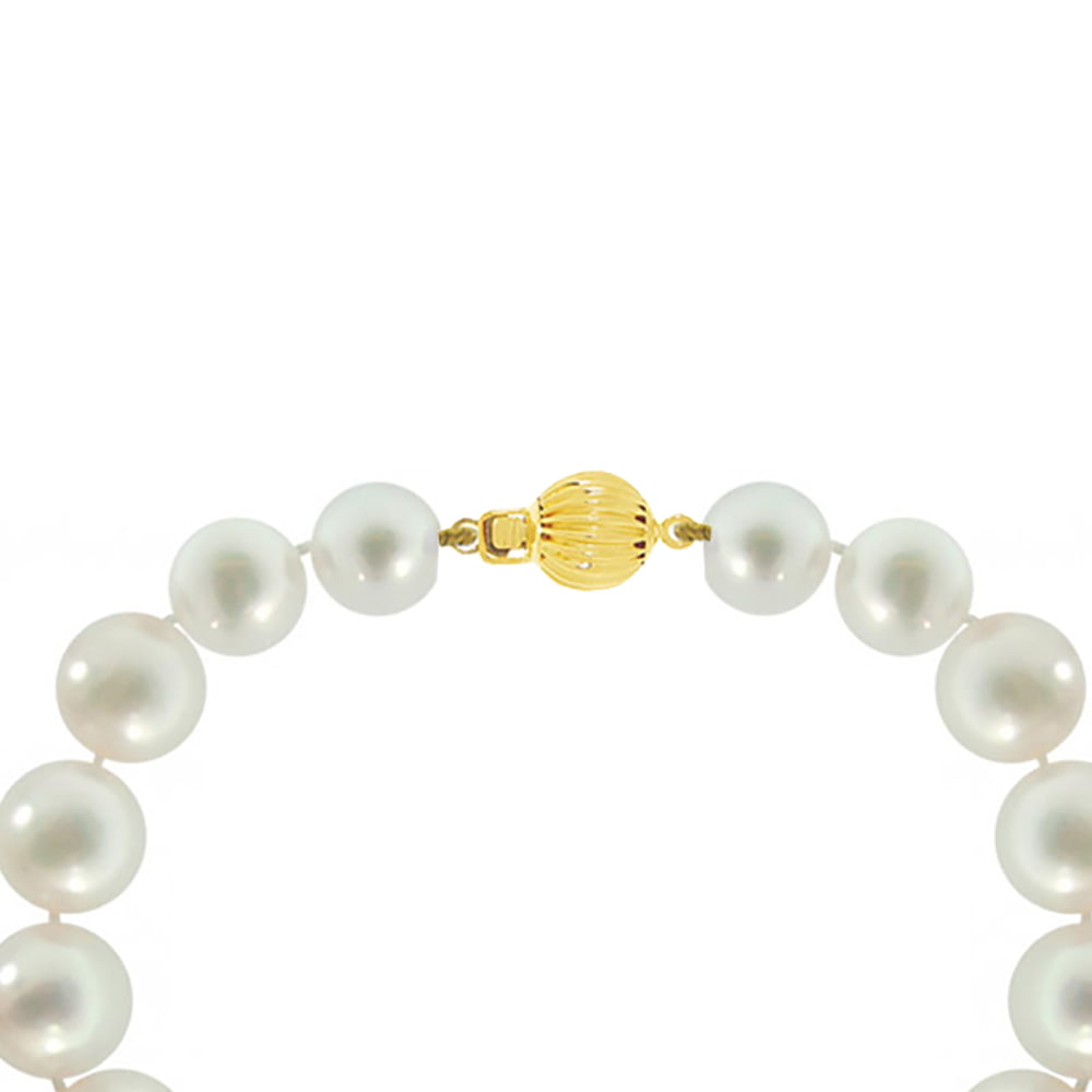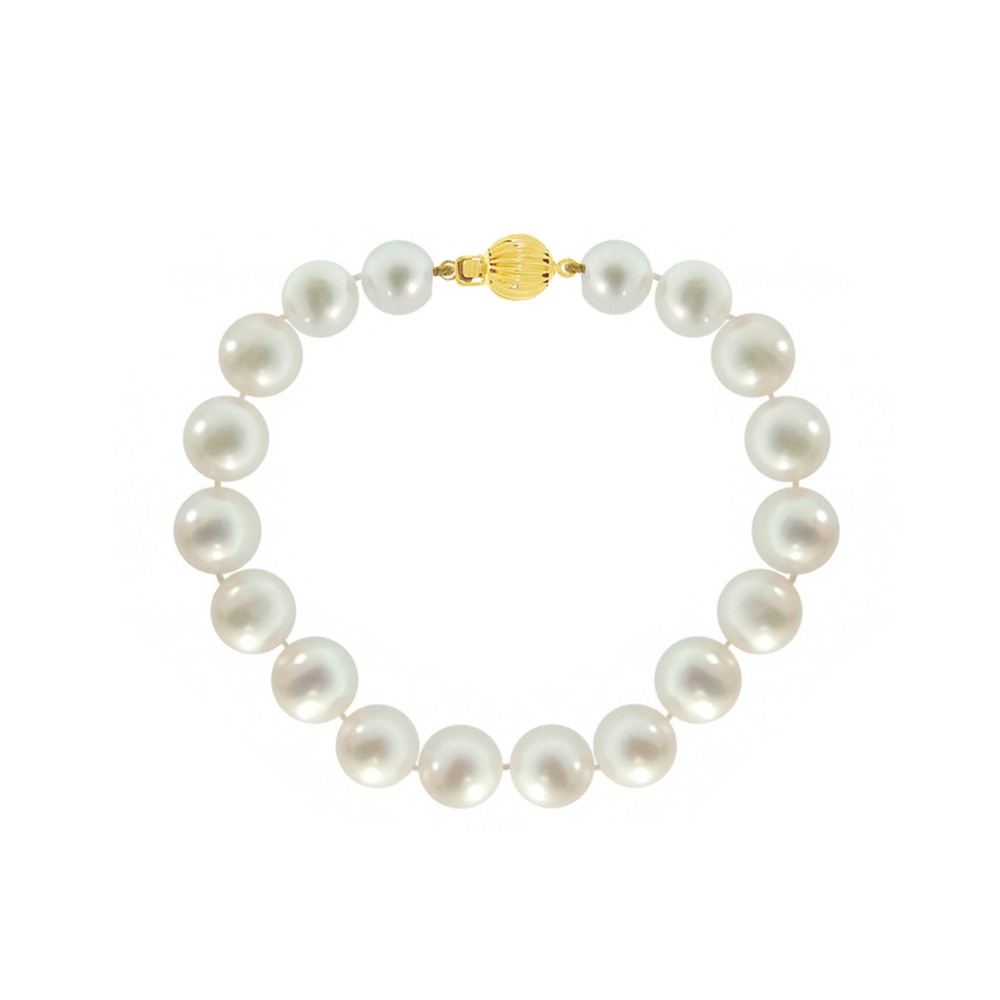 Διαχρονικό βραχιόλι με κούμπωμα από κίτρινο χρυσό 14 καρατίων (585) με εντυπωσιακά fresh water μαργαριτάρια διαμέτρου 9-10 χιλιοστών.