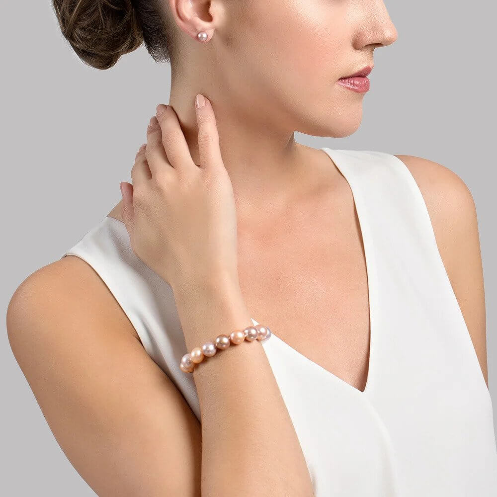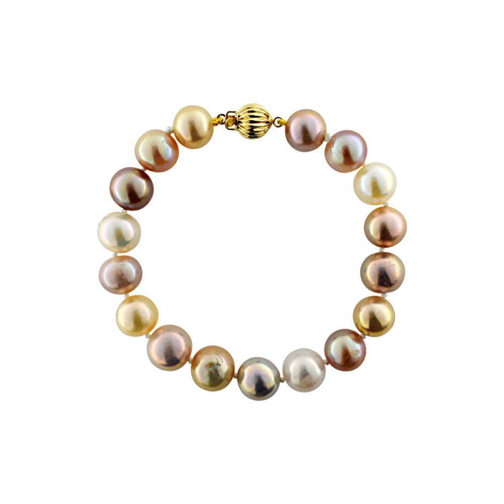 Διαχρονικό βραχιόλι με κούμπωμα από κίτρινο χρυσό 14 καρατίων (585) με εντυπωσιακά fresh water χρωματιστά μαργαριτάρια διαμέτρου 10-11 χιλιοστών.
