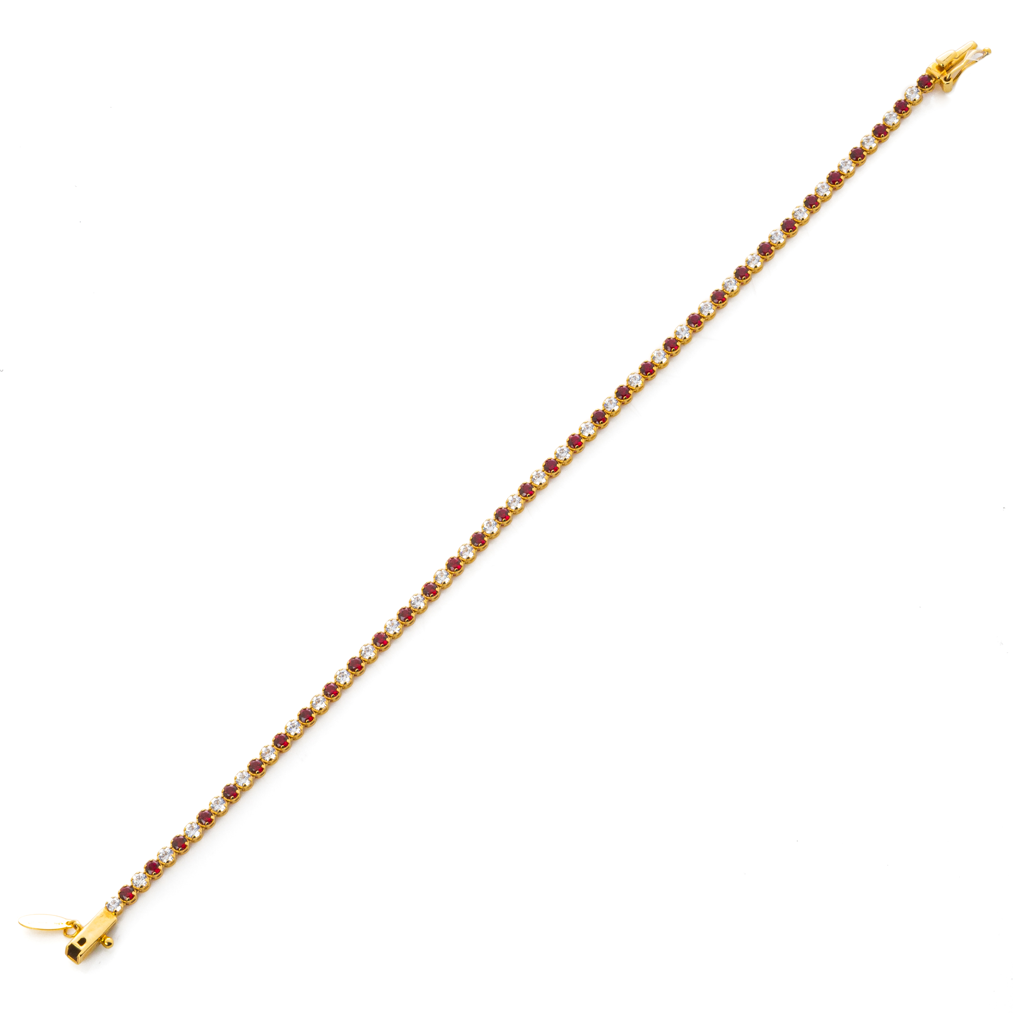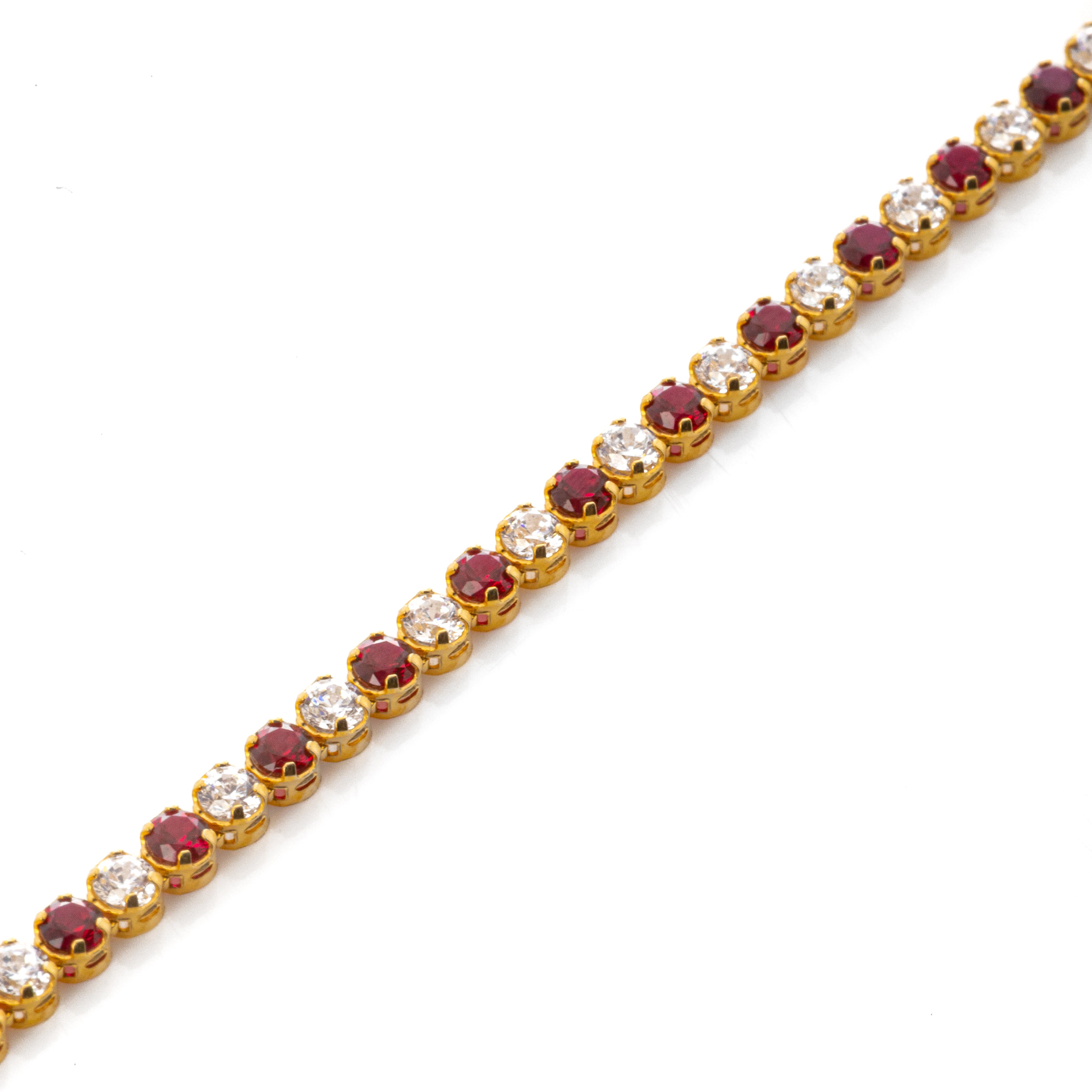 Βραχιόλι ριβιέρα από κίτρινο χρυσό 14 καρατίων (585) με συνθετικές πέτρες κόκκινες και λευκές.