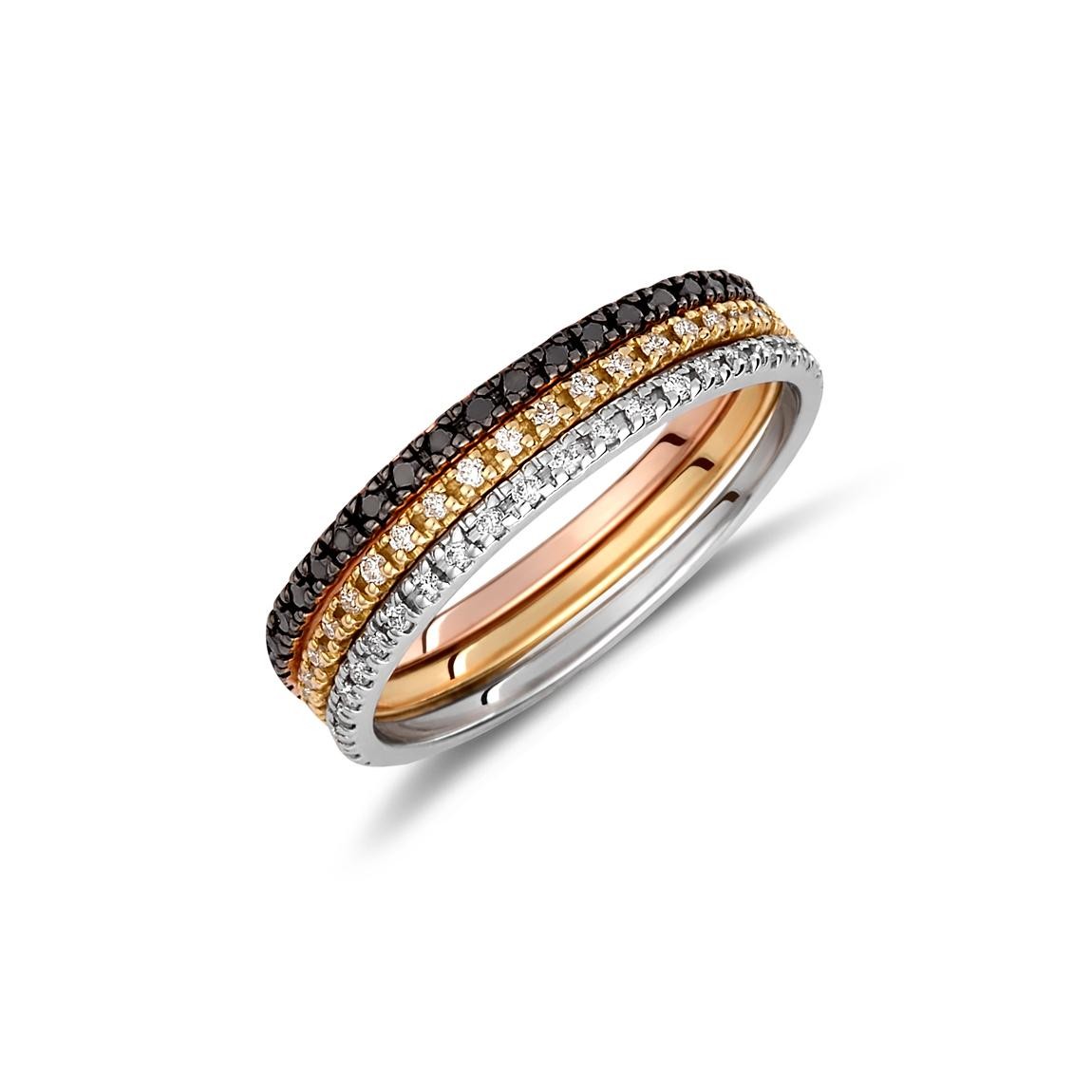 Δαχτυλίδια ολόβερα σε τριλογία με διαμάντια, σε λευκό, κίτρινο και ροζ χρυσό 18 καρατίων.
