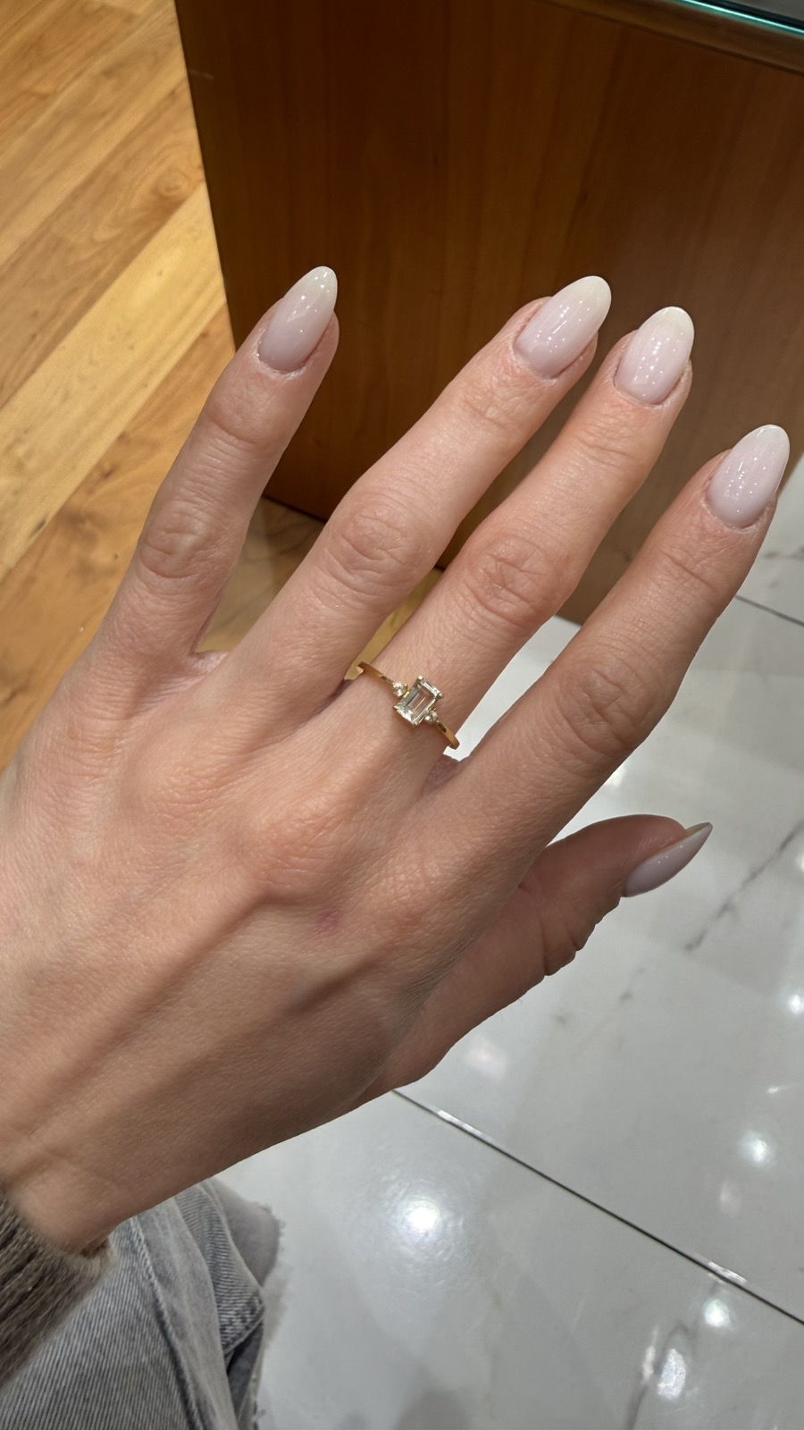 Το βάρος της κεντρικής πέτρας είναι 0.64 ct. Το συνολικό βάρος των διαμαντιών είναι 0.07ct, με χρώμα G και καθαρότητα VS1.