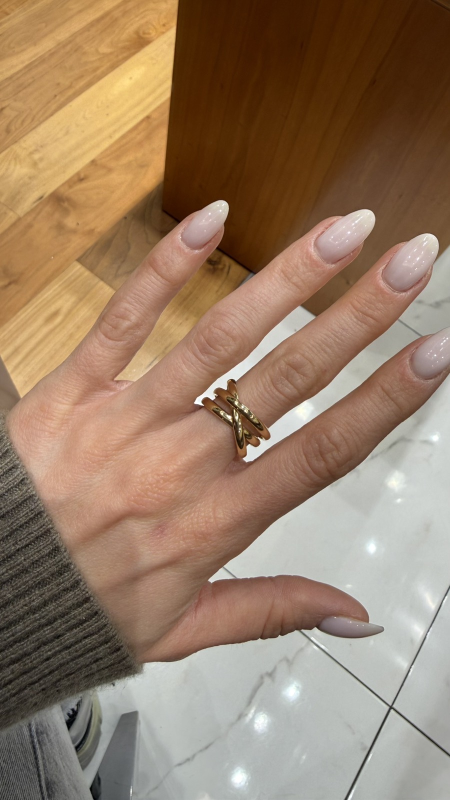 Ιδιαίτερα εντυπωσιακό δαχτυλίδι από κίτρινο χρυσό 14 καρατίων, σκέτο , χωρίς πέτρες. Αποτελείται στο επάνω μέρος από τρία βεράκια που είναι μεταξύ τους πλεγμένα.