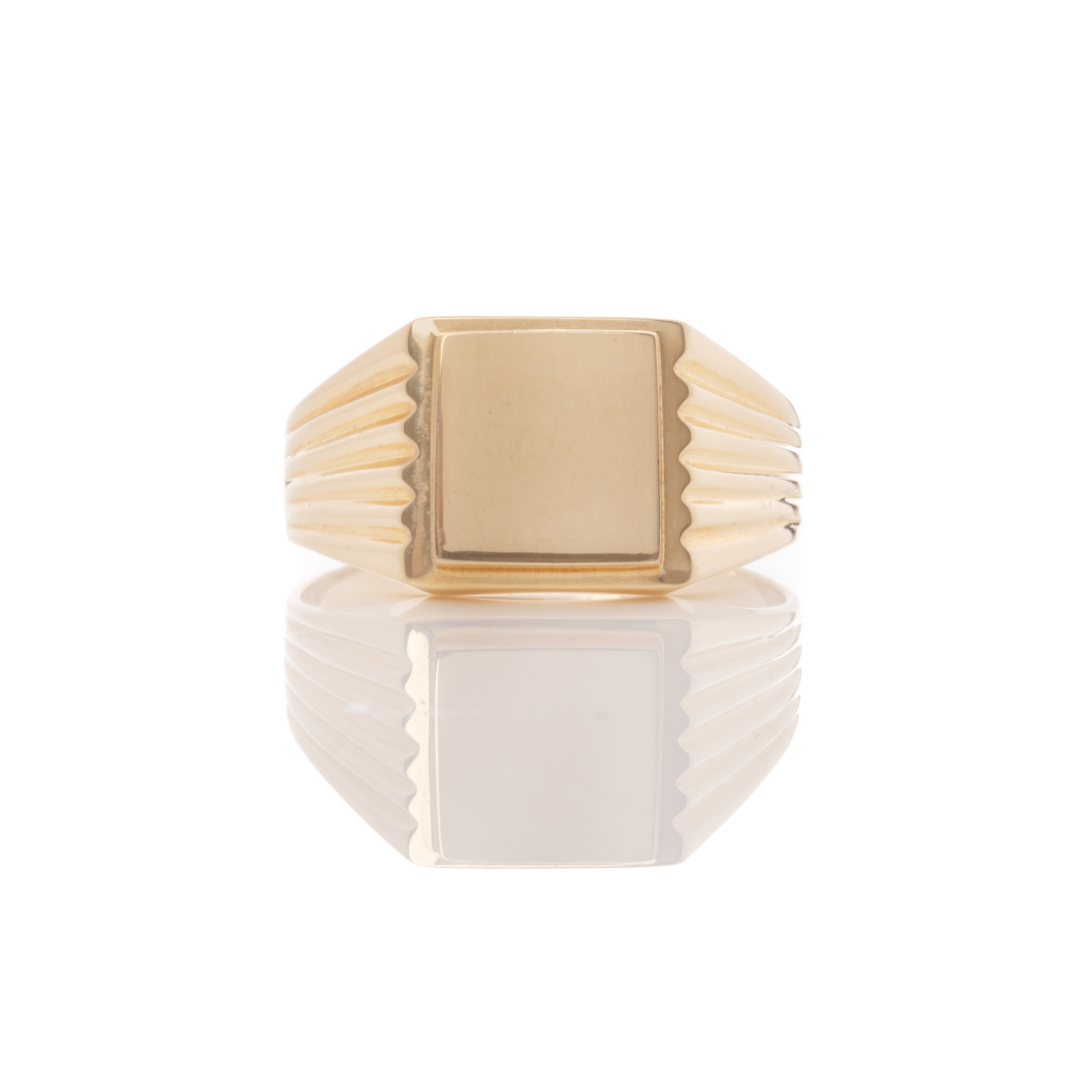 Κλασικό, απλό ανδρικό δαχτυλίδι από κίτρινο χρυσό 14 καρατίων (κ585), σκέτο χωρίς πέτρες με σκάλισμα στο πλαϊνό τμήμα. Στο επάνω τμήμα μπορεί να χαραχθεί μονόγραμμα ή ότι άλλο θα επιθυμούσατε, χωρίς επιπλέον χρέωση.