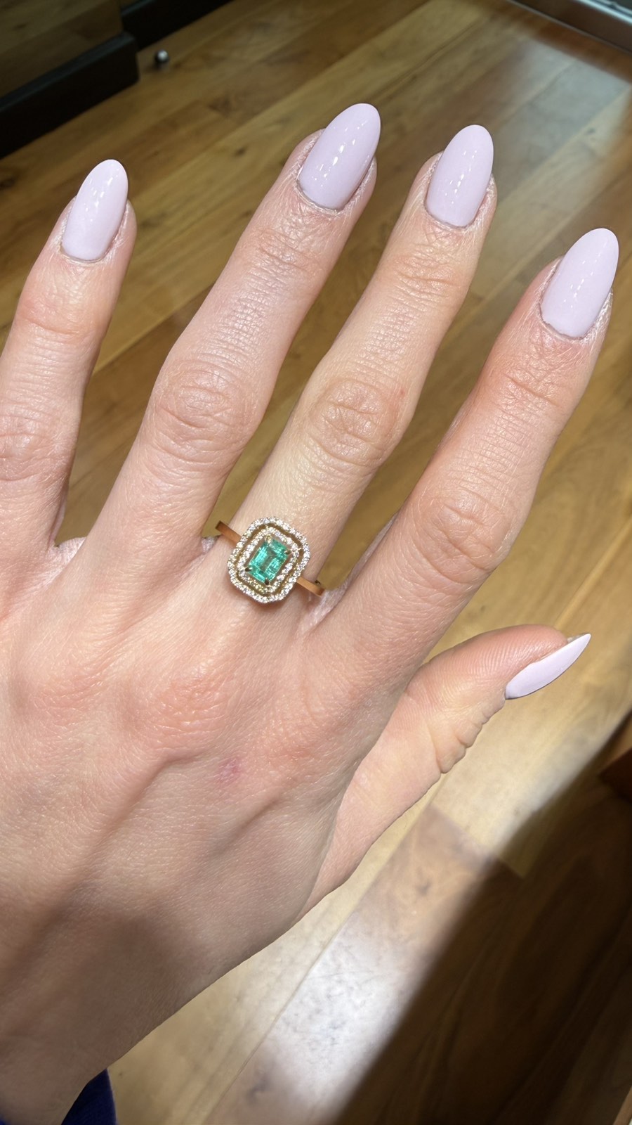 Το βάρος του σμαραγδιού είναι 0.70ct. Το συνολικό βάρος των διαμαντιών είναι 0.23ct.