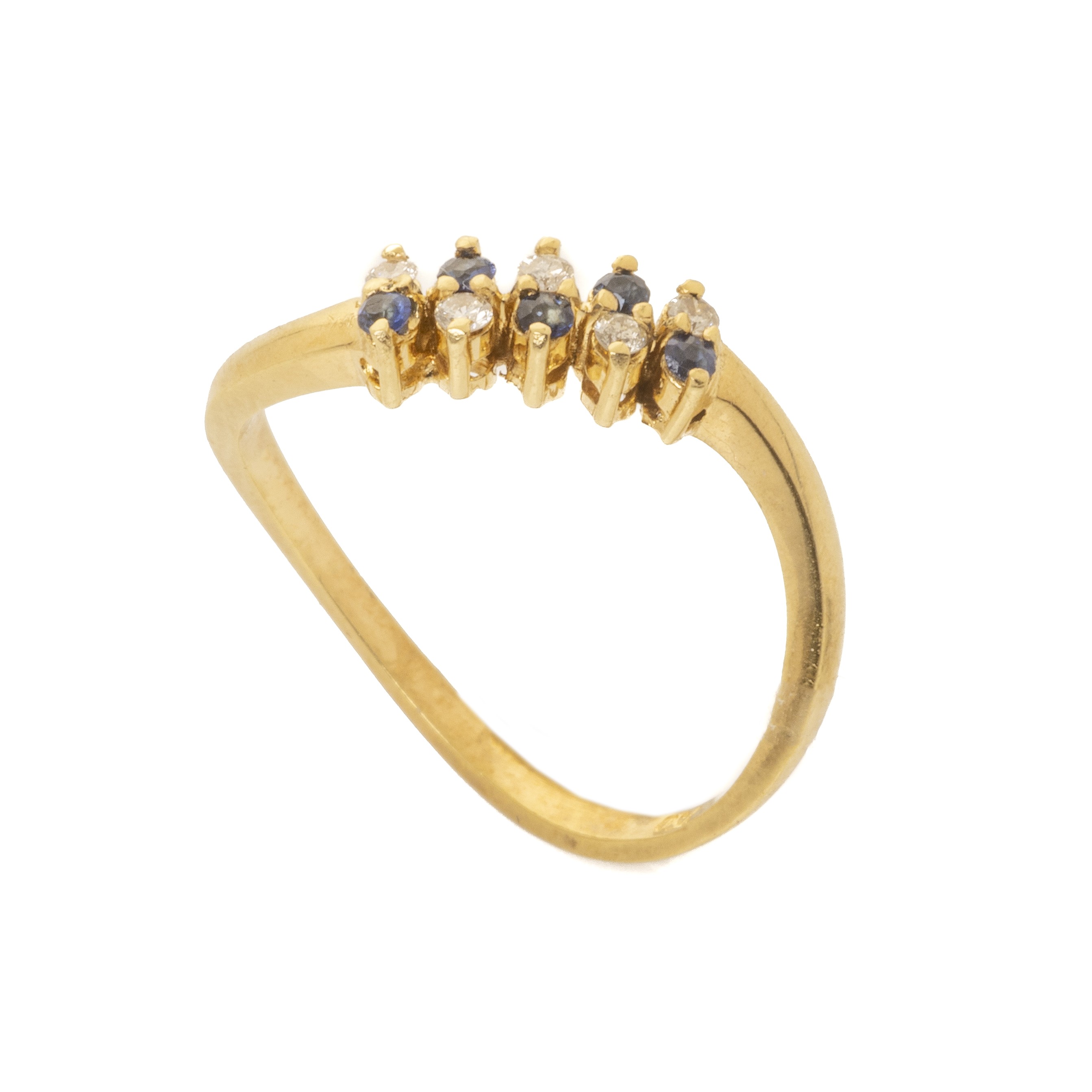 Εντυπωσιακό δαχτυλίδι από κίτρινο χρυσό 18 καρατίων με διαμάντια και μπλε ζαφείρια.