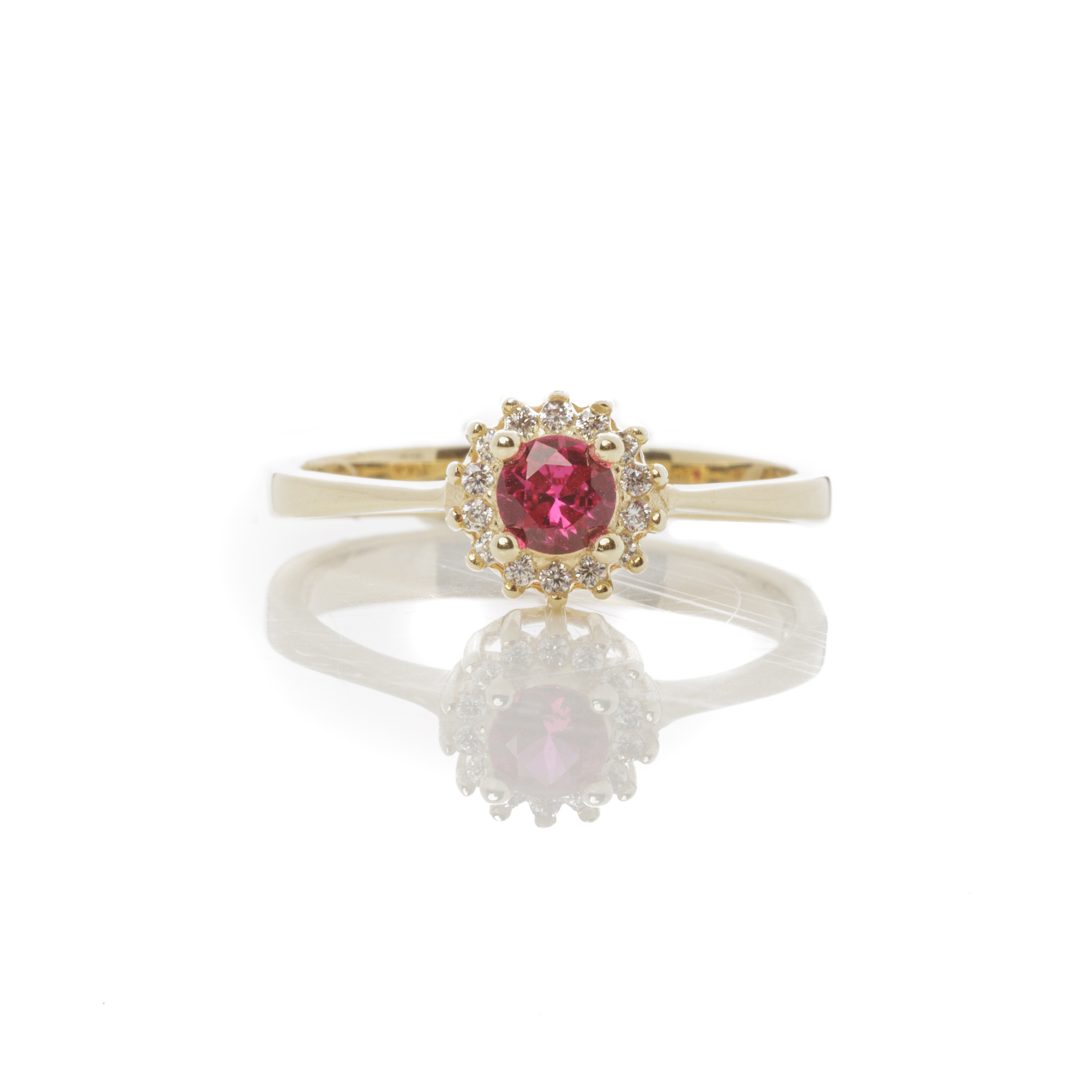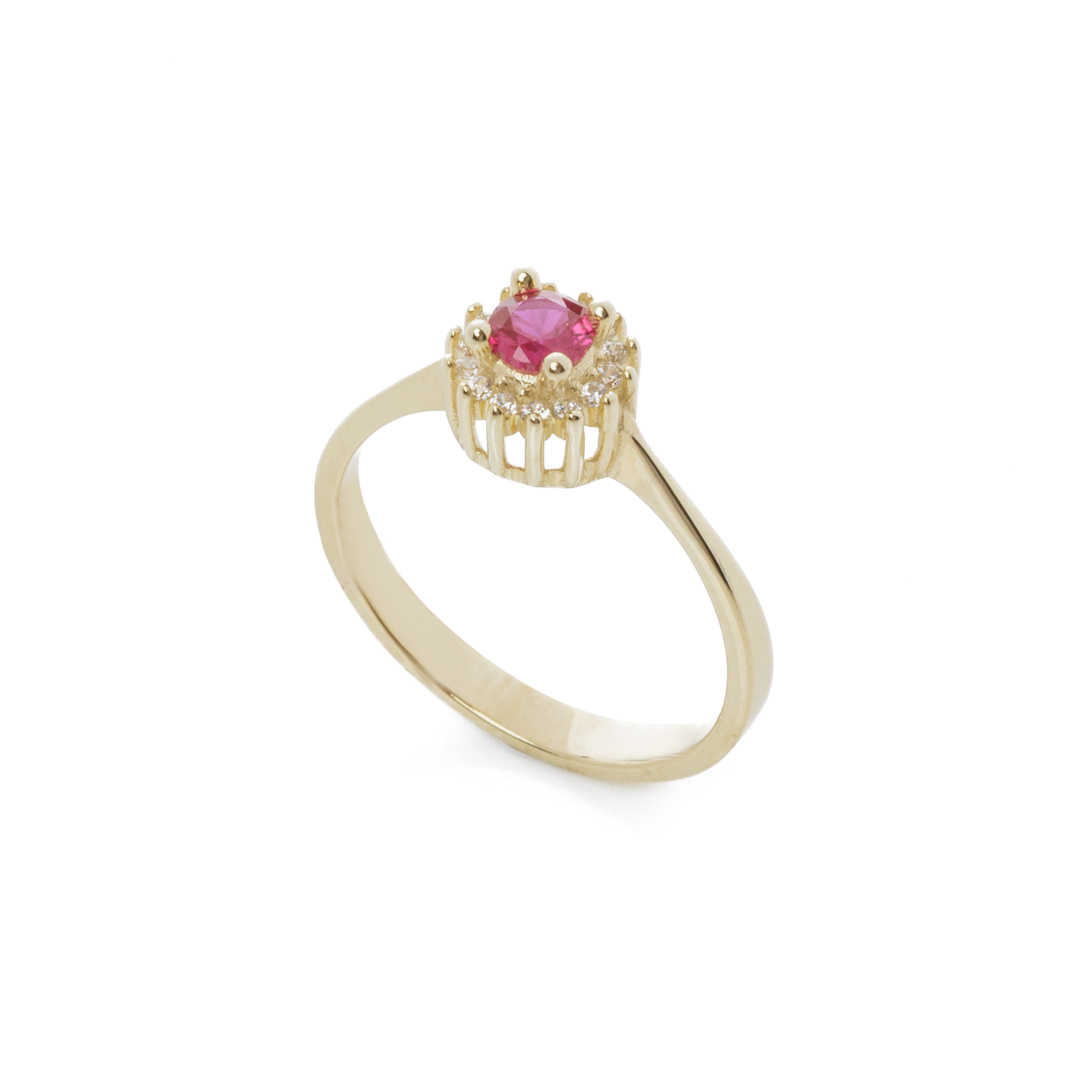 Αστραφτερό δαχτυλίδι ροζέτα από κίτρινο χρυσό 9 καρατίων με αστραφτερές ζιργκόν πέτρες.