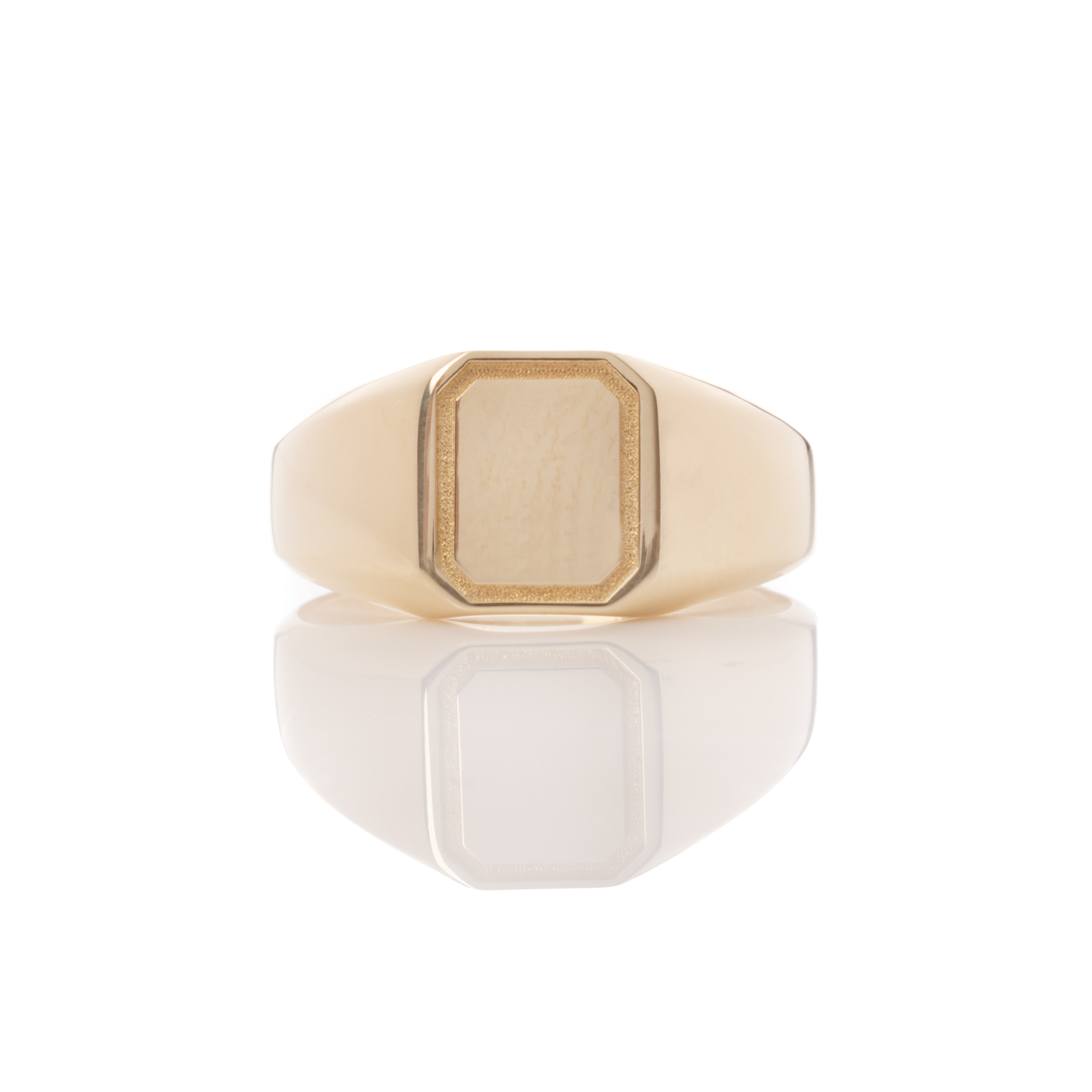 Κλασικό, απλό ανδρικό δαχτυλίδι από κίτρινο χρυσό 14 καρατίων (κ585), σκέτο χωρίς πέτρες. Στο επάνω τμήμα με το περίγραμμα μπορεί να χαραχθεί μονόγραμμα ή ότι άλλο θα επιθυμούσατε, χωρίς επιπλέον χρέωση.