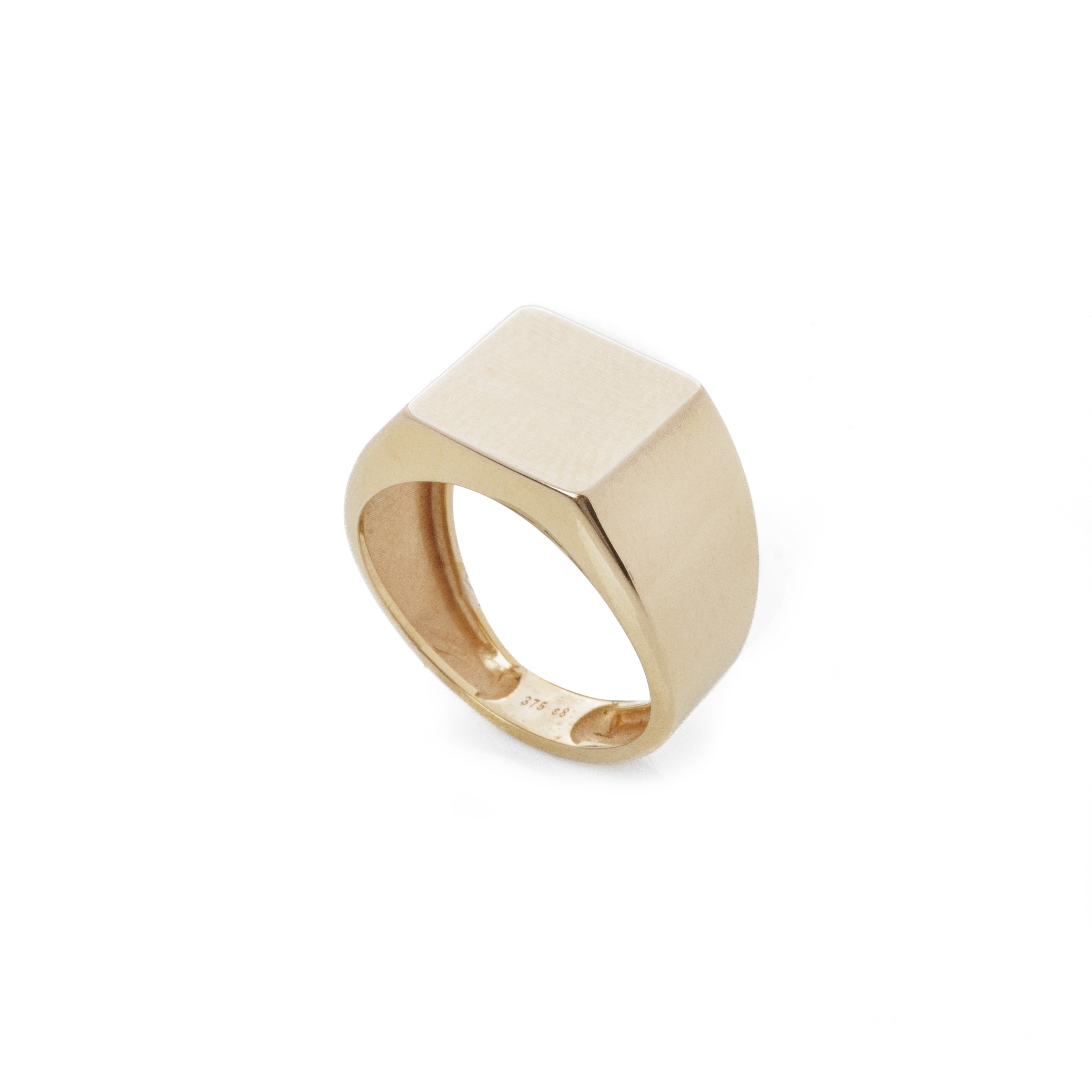 Κλασικό, απλό ανδρικό δαχτυλίδι από κίτρινο χρυσό 9 καρατίων (κ375), σκέτο χωρίς πέτρες. Στο επάνω τμήμα του είναι ματ και μπορεί να χαραχθεί οτιδήποτε θέλετε.