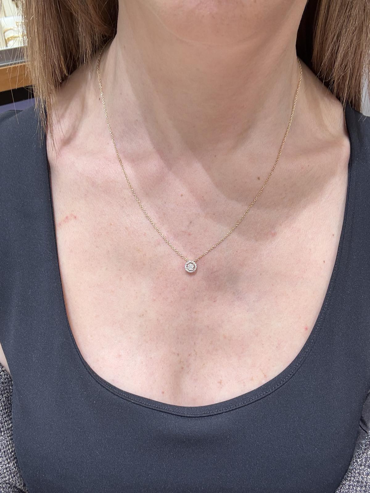 Διαχρονικό κολιέ από κίτρινο χρυσό 18 καρατίων(750) με διαμάντια κοπής brilliant. Η αλυσίδα που συνοδεύει το κρεμαστό συμπεριλαμβάνεται στην τιμή.