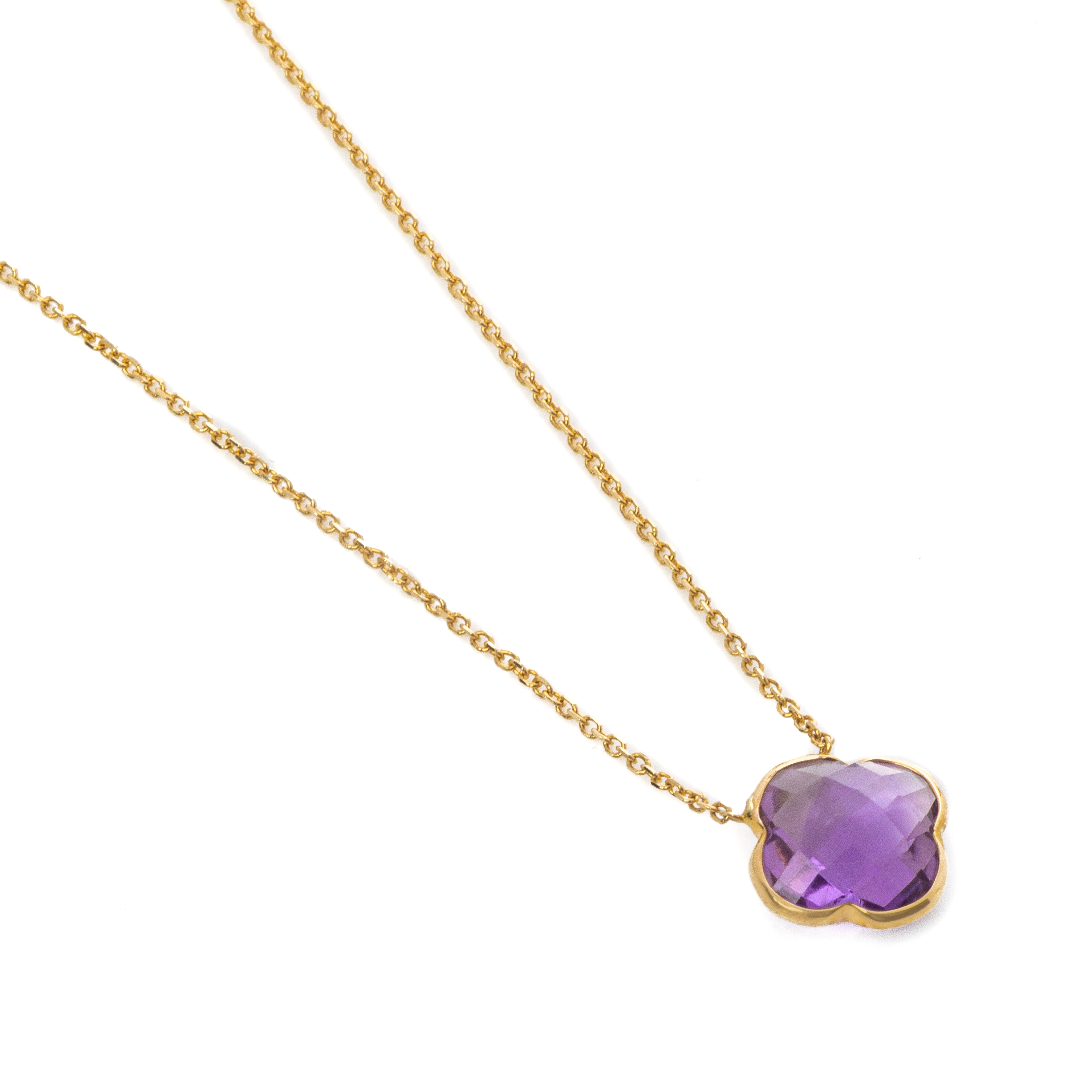 Εντυπωσιακό κολιέ από κίτρινο χρυσό 14 καρατίων (585) με αμέθυστο σε ιδιαίτερο σχήμα στο κέντρο του.