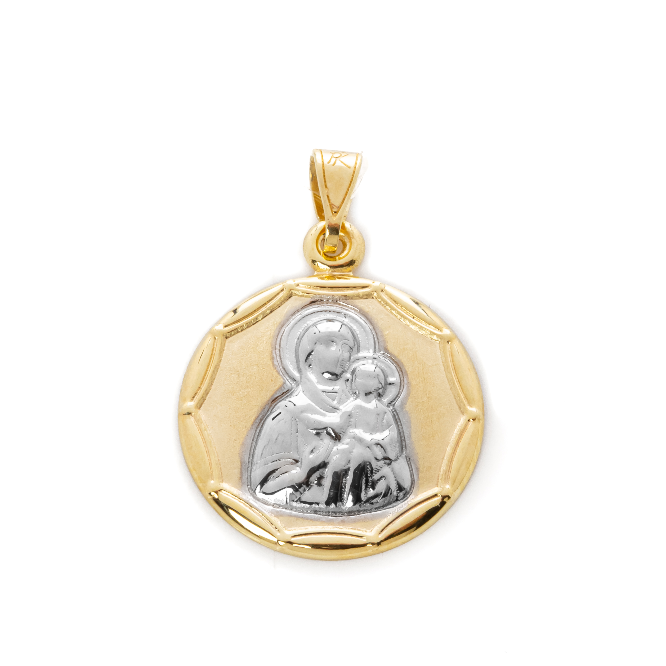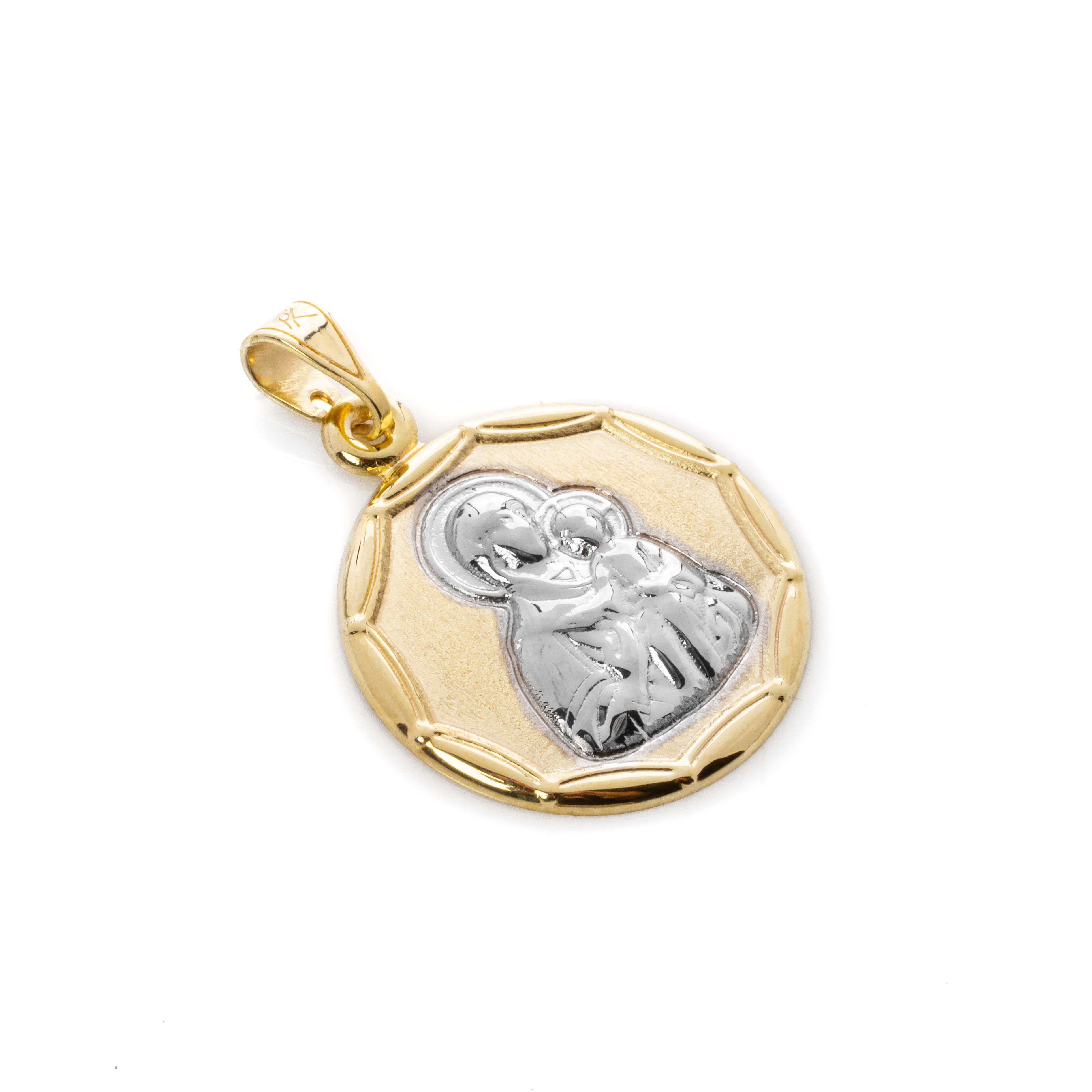 Κρεμαστό κωνσταντινάτο και Παναγία από κίτρινο χρυσό 9 καρατίων (375) σε στρογγυλό σχήμα.