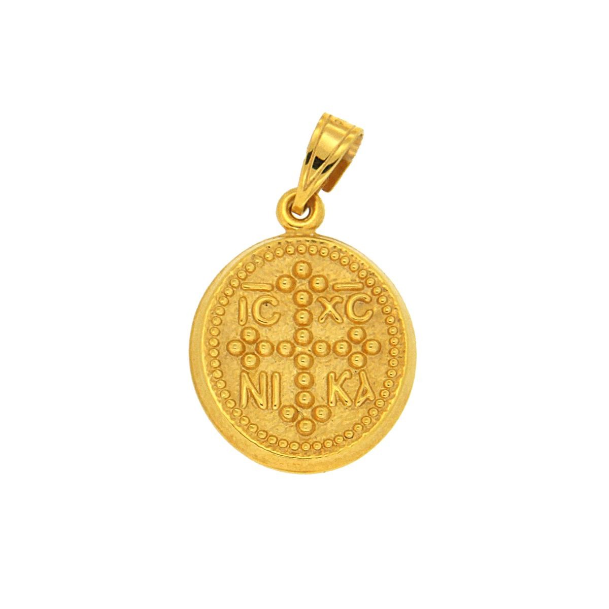 Διαχρονικό, κλασσικό κρεμαστό κωνσταντινάτο από χρυσό 14 καρατίων, με ανάγλυφο σχέδιο. Μπορεί να συνδυαστεί με χρυσή αλυσίδα, δερμάτινο λουράκι στο χρώμα της αρεσκείας σας και να φορεθεί στο λαιμό συνδυασμένο με άλλα κρεμαστά σε διάφορα μεγέθη και μήκη. Επίσης, μπορεί να περαστεί σε παραμάνα για βρεφικό δώρο.
