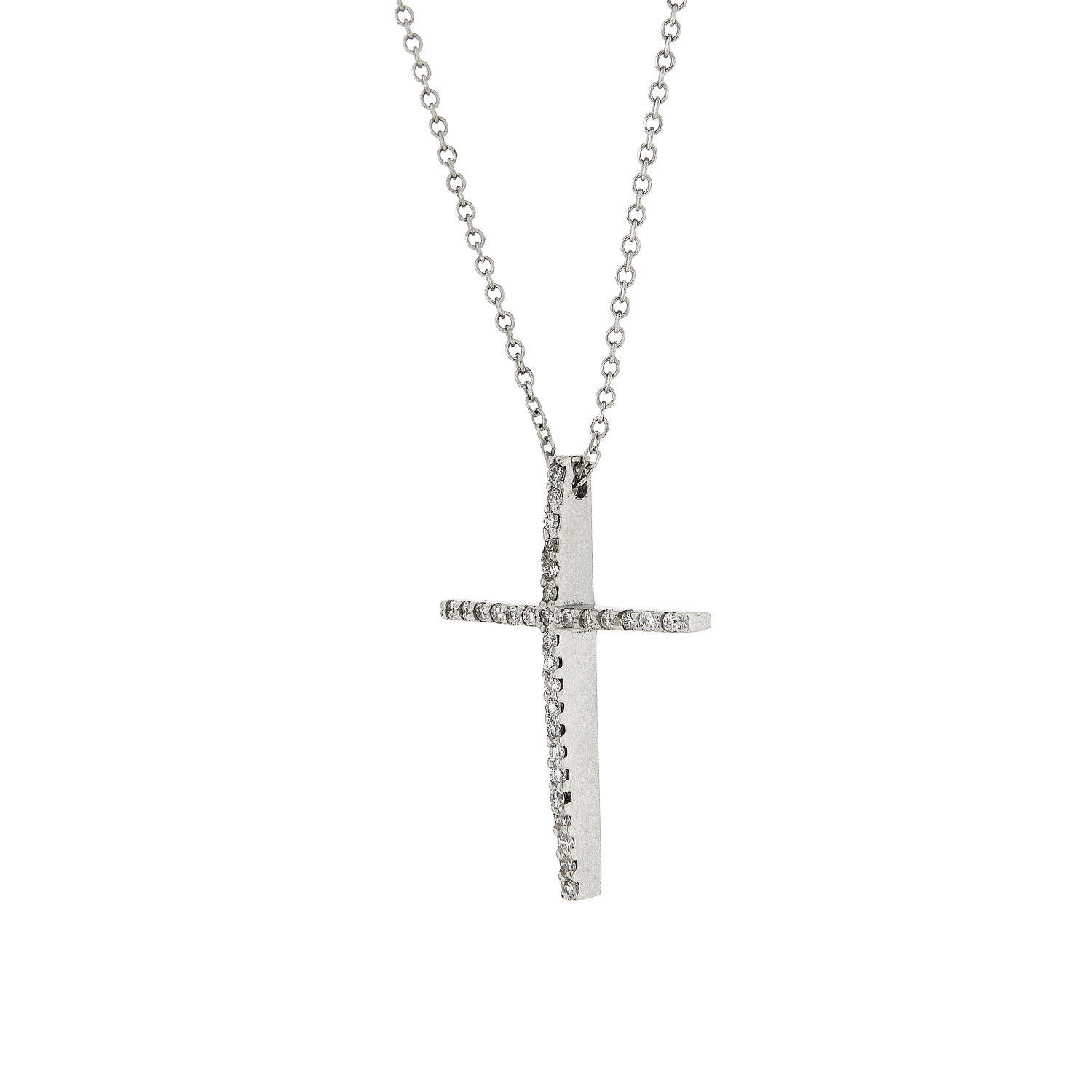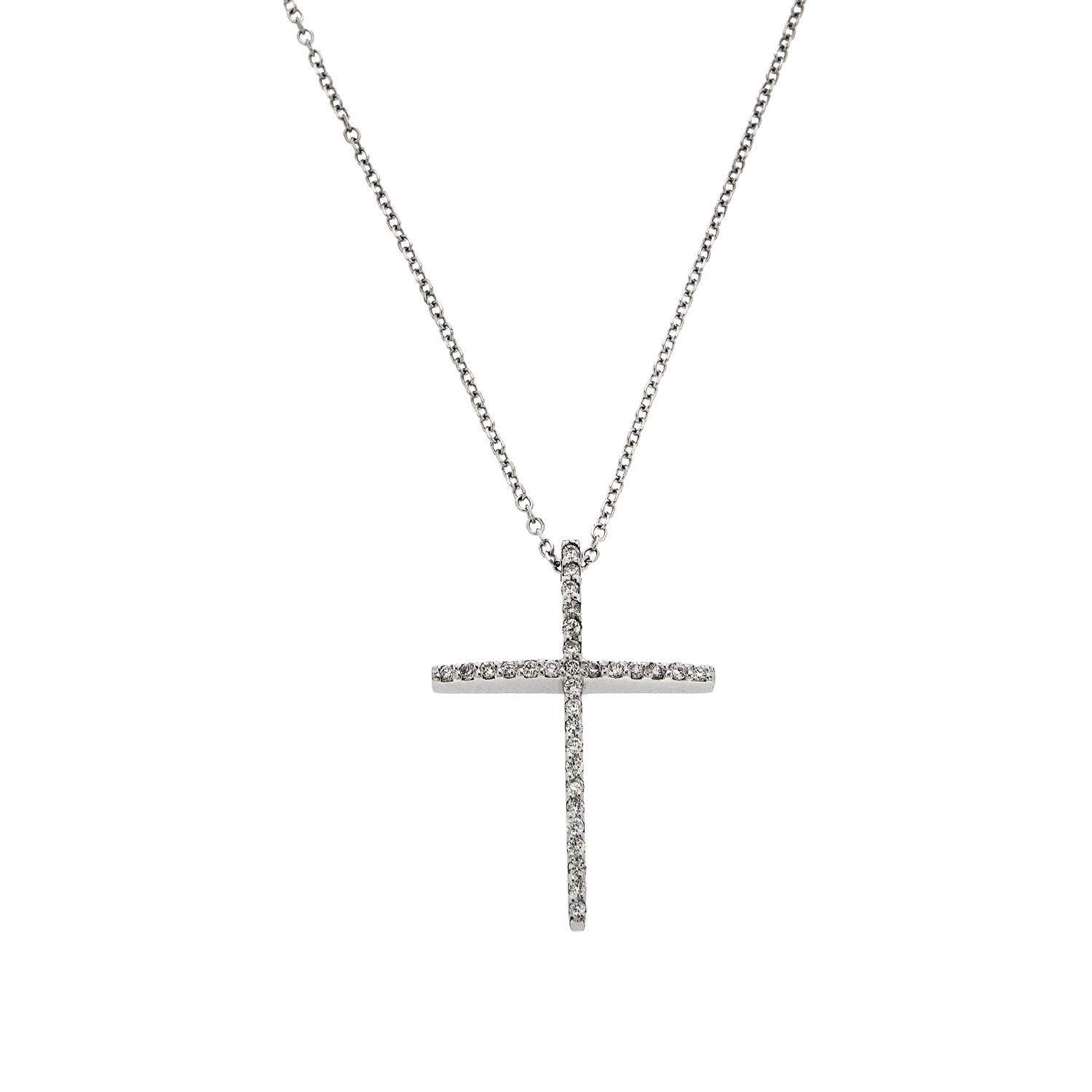 Σταυρός με διαμάντια (μπριγιάν) και αλυσίδα, από λευκόχρυσο 18 καρατίων (κ750).