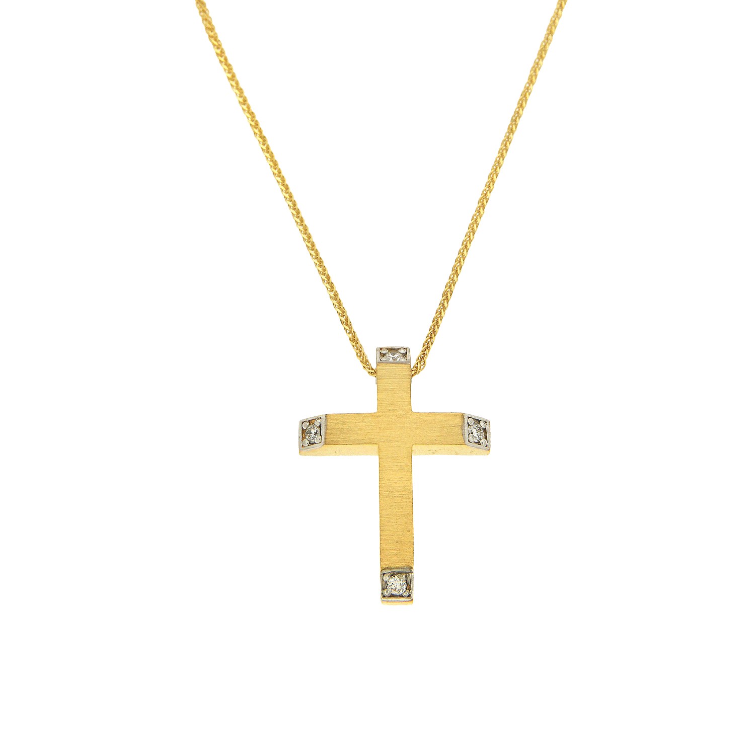 Σταυρός με διαμάντια (μπριγιάν) και αλυσίδα, από λευκόχρυσο 18 καρατίων (κ750).