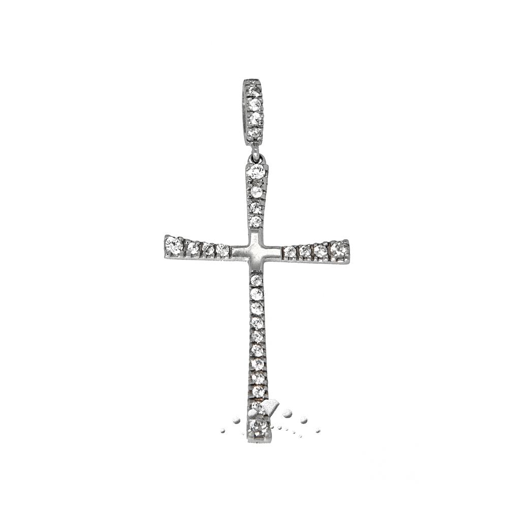 Σταυρός λευκόχρυσος λεπτός 14 καρατίων (κ585)