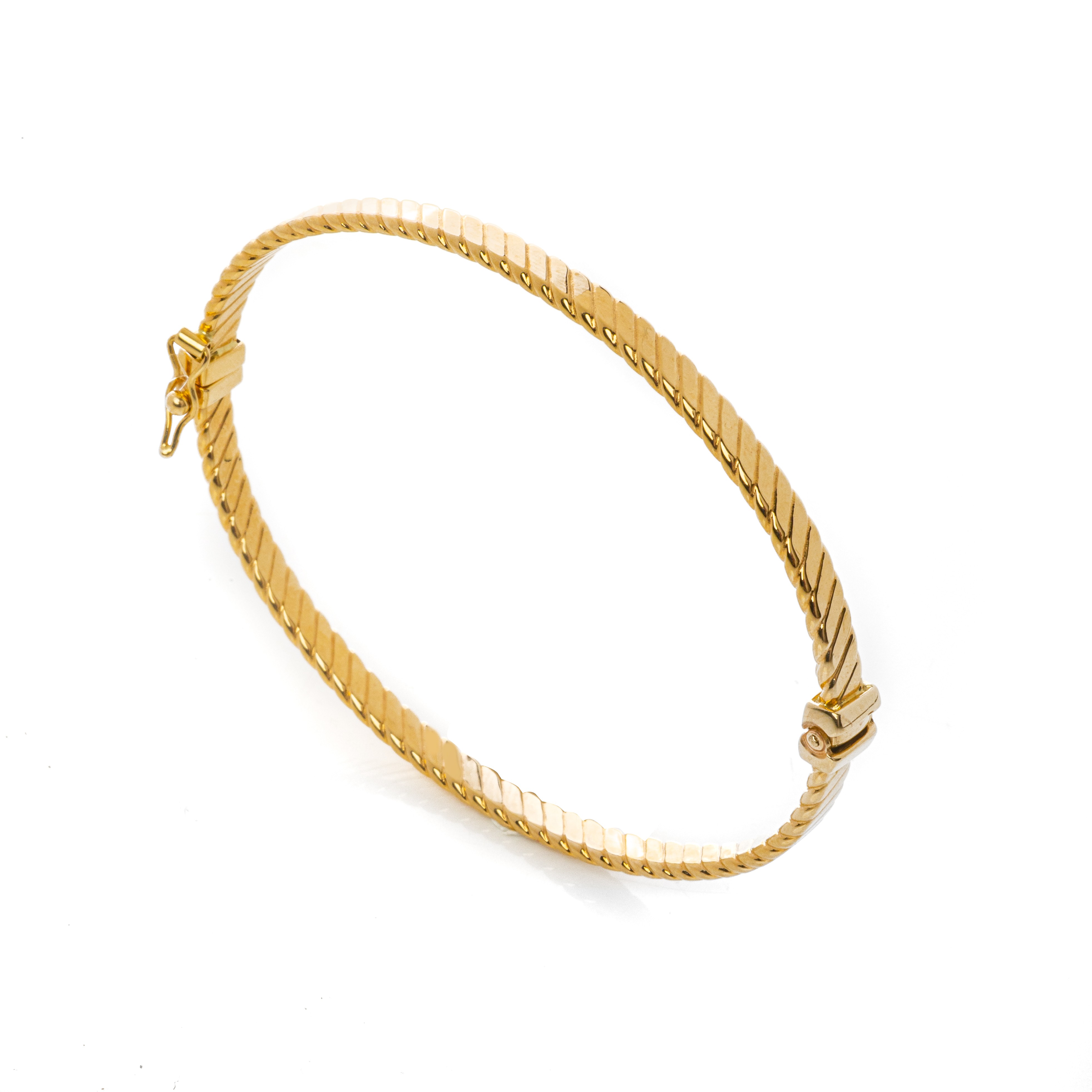 Κλασικό, σταθερό βραχιόλι σε σχέδιο χειροπέδα από κίτρινο χρυσό 14 καρατίων (585). Διαθέτει κούμπωμα ασφαλείας.