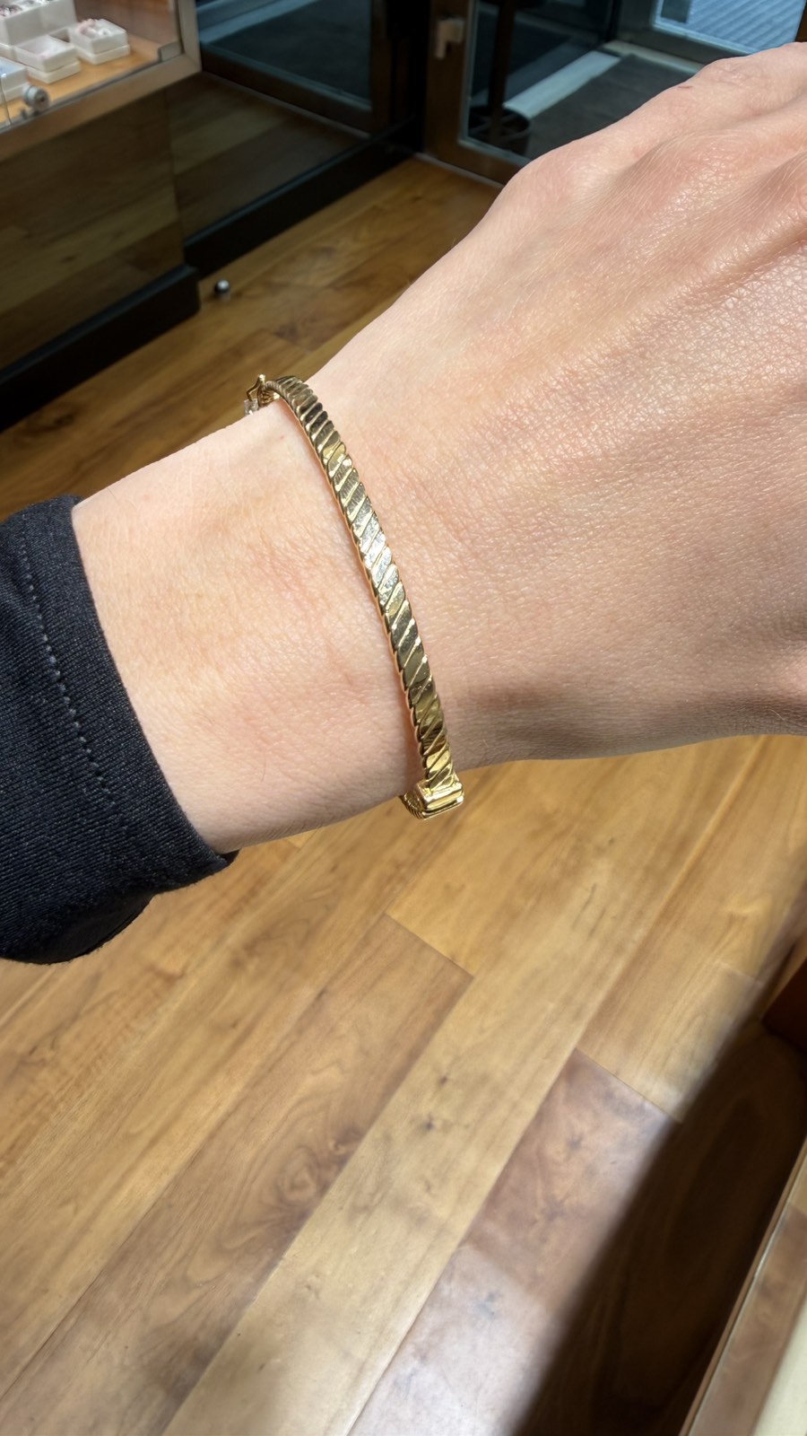 Διαχρονικό, σταθερό βραχιόλι σε χειροπέδα σκέτη από κίτρινο χρυσό 14 καρατίων.