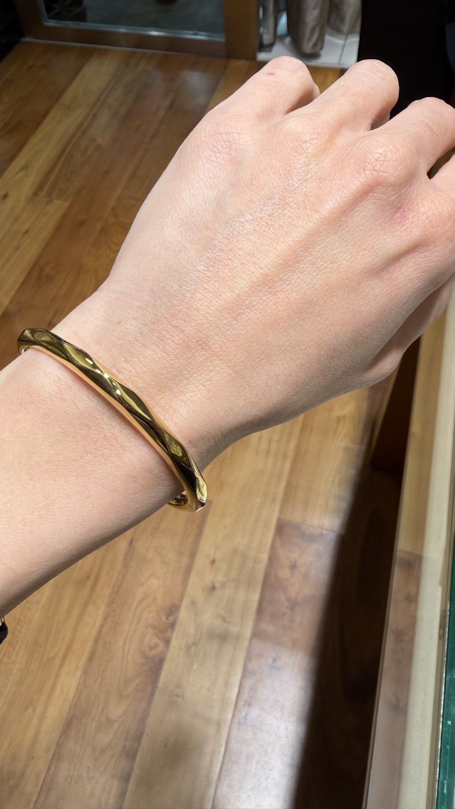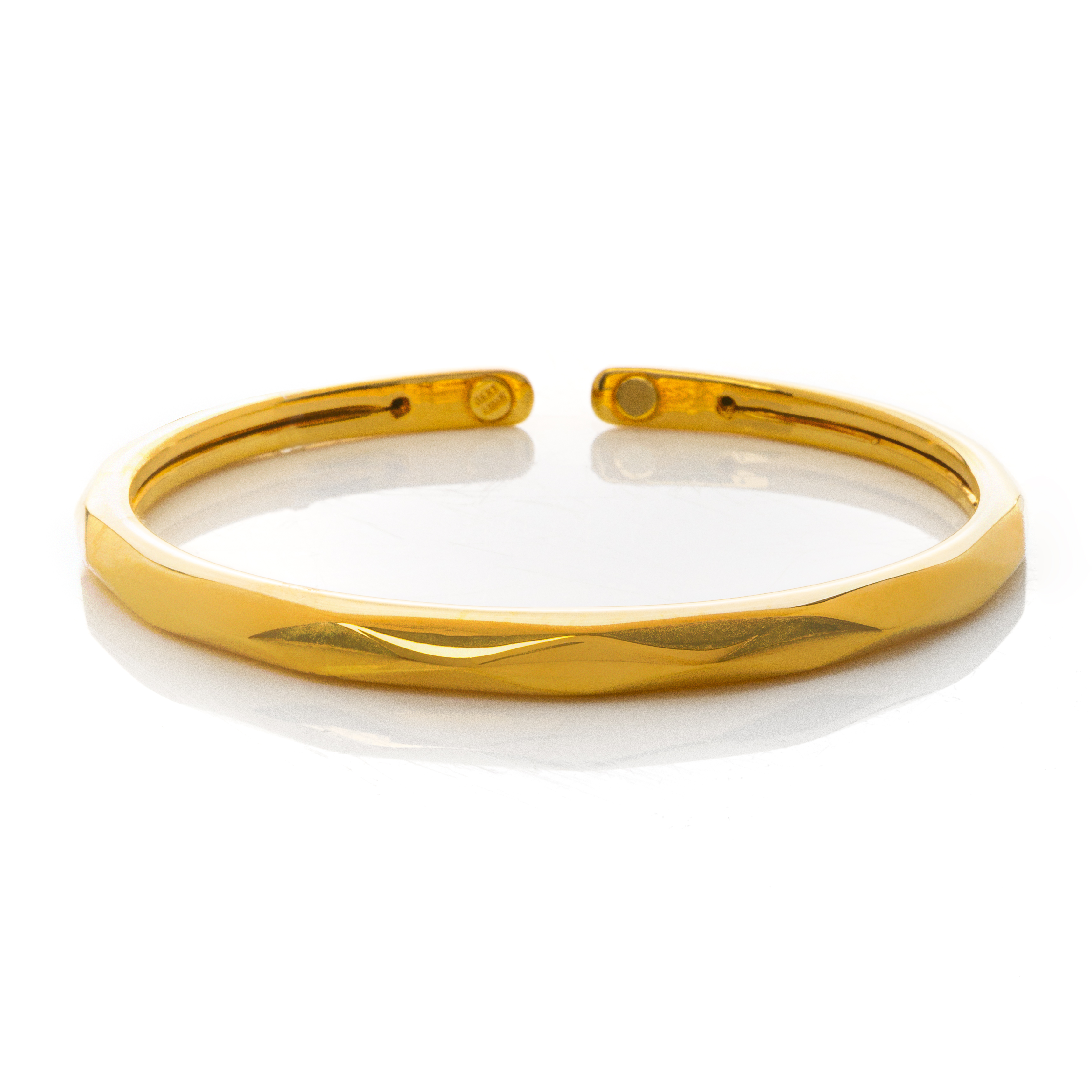 Βραχιόλι σταθερό, χειροπέδη από κίτρινο χρυσό 14 καρατίων(585). Το βραχιόλι έχει άνοιγμα στο κάτω τμήμα και σκάλισμα στο επάνω. Διαθέτει κούμπωμα ασφαλείας.