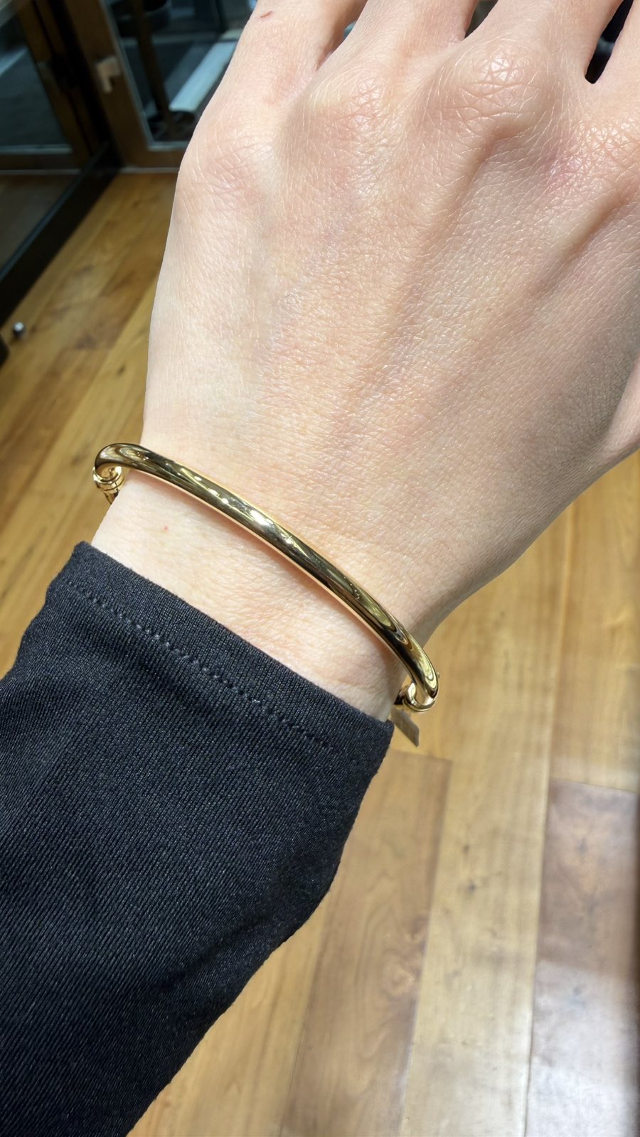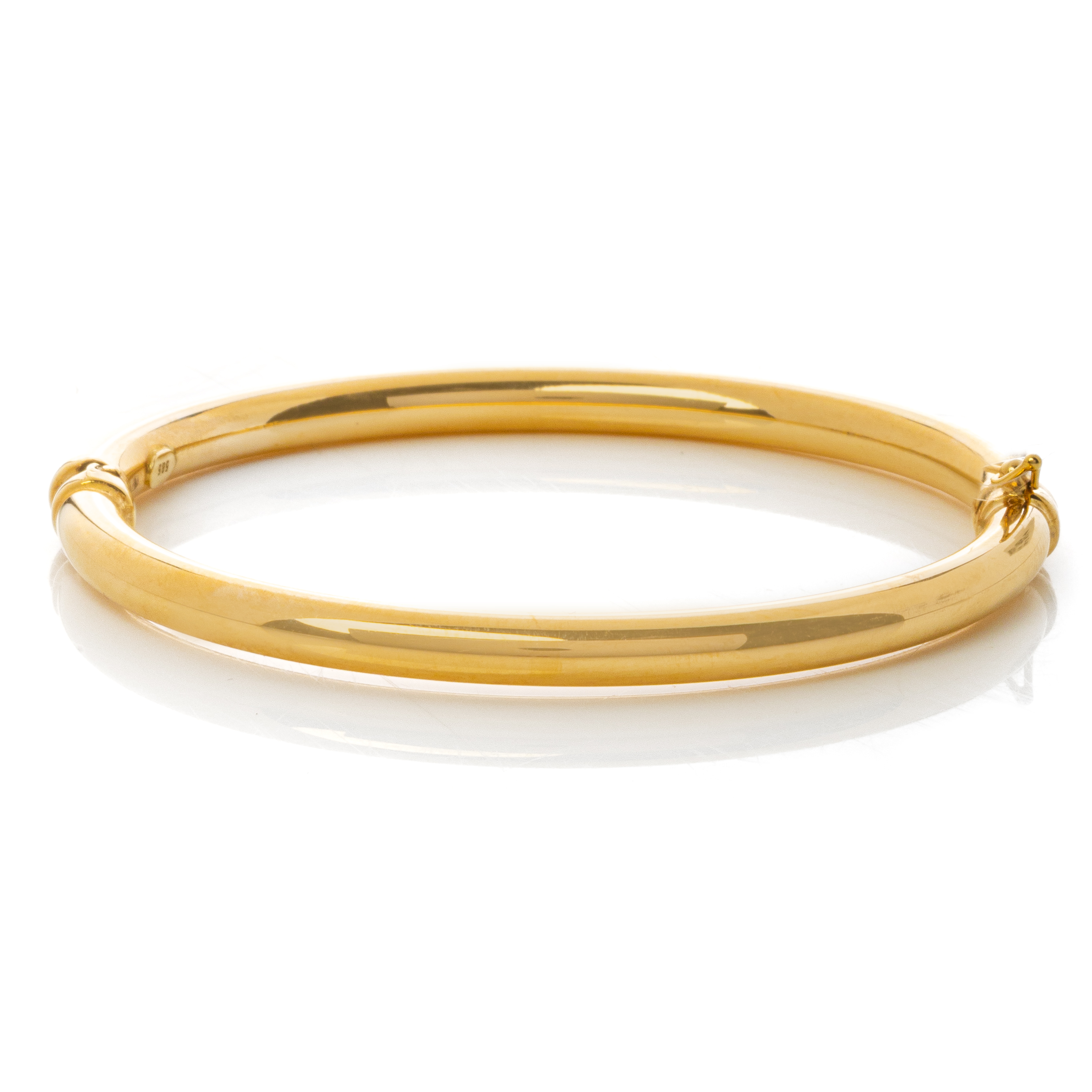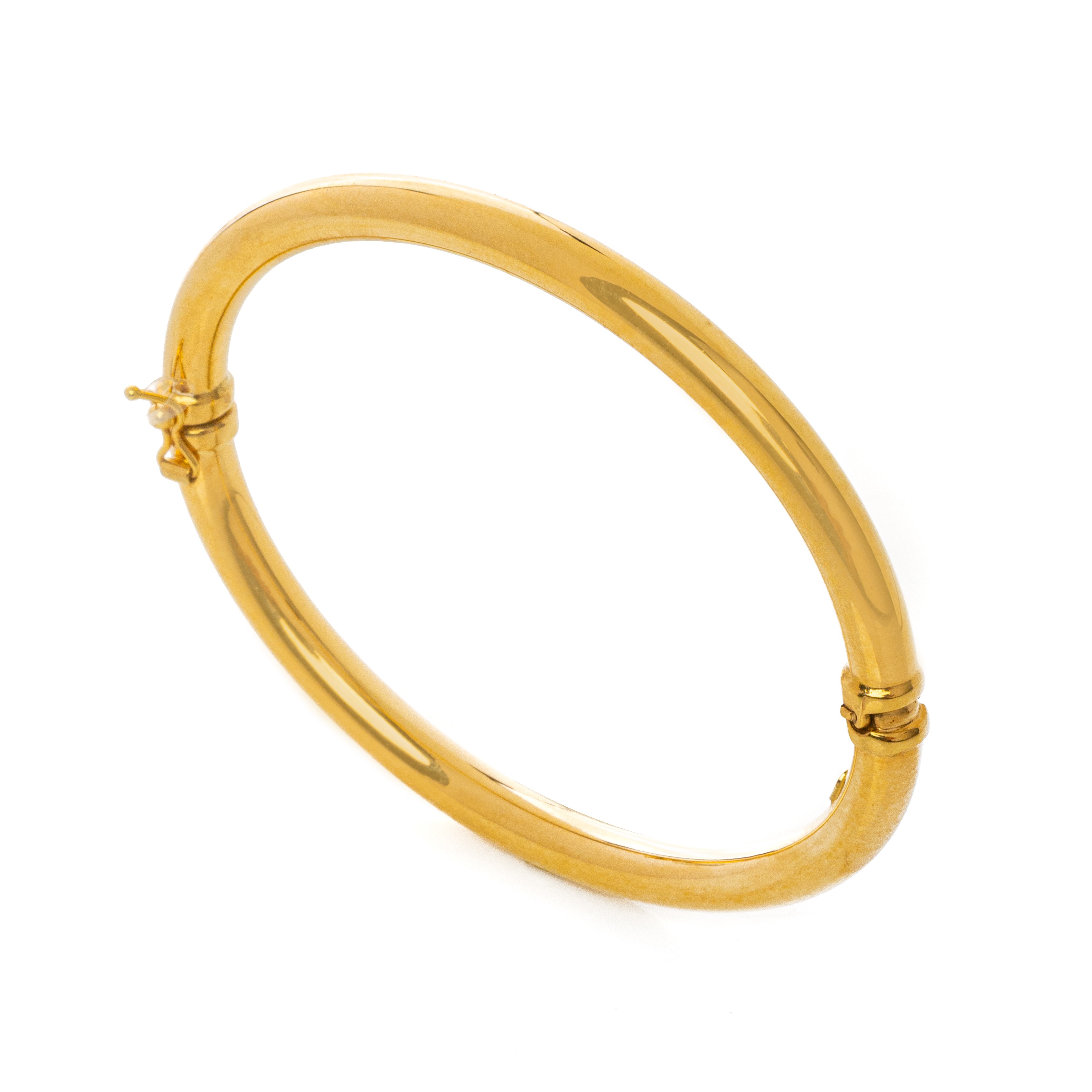 Βραχιόλι σταθερό, χειροπέδα από κίτρινο χρυσό 14 καρατίων(585). Το βραχιόλι είναι ολοστρόγγυλο, σκέτο και γυαλιστερό. Διαθέτει κούμπωμα ασφαλείας.