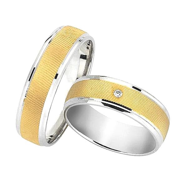 Ζευγάρι βέρες δίχρωμες από χρυσό και λευκόχρυσο, σε ice mat, 14 καρατίων. Σχέδιο 371a-aa