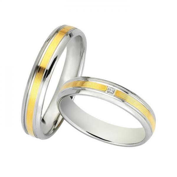 Ζευγάρι βέρες δίχρωμες από χρυσό και λευκόχρυσο, σε ice mat, 14 καρατίων. Σχέδιο 371a-aa