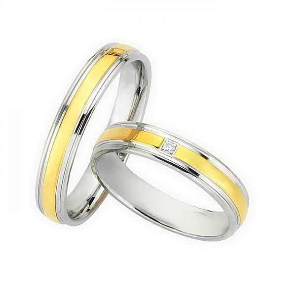 Βέρες Bonise, δίχρωμες από χρυσό και λευκόχρυσο, 14 καρατίων (κ585), η γυναικεία με πέτρα ζιργκόν.