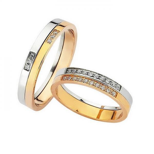 Ζευγάρι βέρες δίχρωμες από χρυσό και λευκόχρυσο, σε ice mat, 14 καρατίων. Σχέδιο 371a-aa