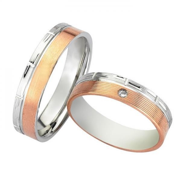 Βέρες Bonise, δίχρωμες από ροζ χρυσό και λευκόχρυσο, 18 καρατίων (κ585),η γυναικεία με πέτρα ζιργκόν.