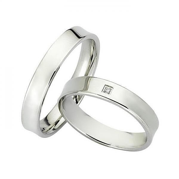 Ζευγάρι βέρες Bonise, λευκόχρυσες 14 καρατίων, η γυναικεία με πέτρα ζιργκόν. Σχέδιο wd6940ba