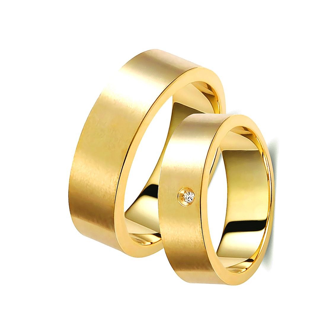 Ζευγάρι βέρες χρυσές 14 καρατίων, η γυναικεία με διαμάντι βάρους 0,015ct (μπριγιάν) και ποιότητα F/VS1.