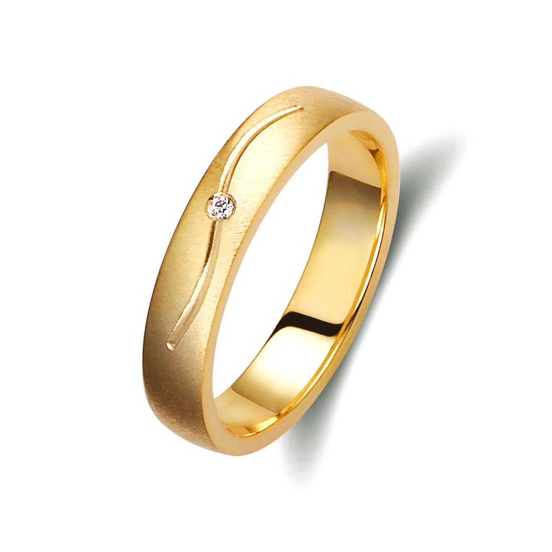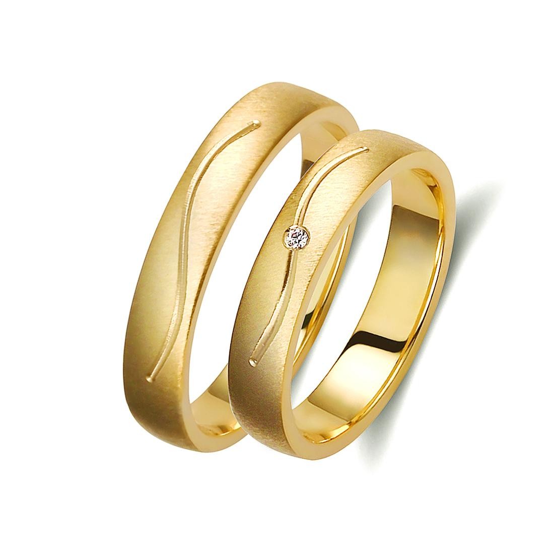 Ζευγάρι βέρες χρυσές 14 καρατίων, η γυναικεία με διαμάντι βάρους 0,015ct (μπριγιάν) και ποιότητα F/VS1.