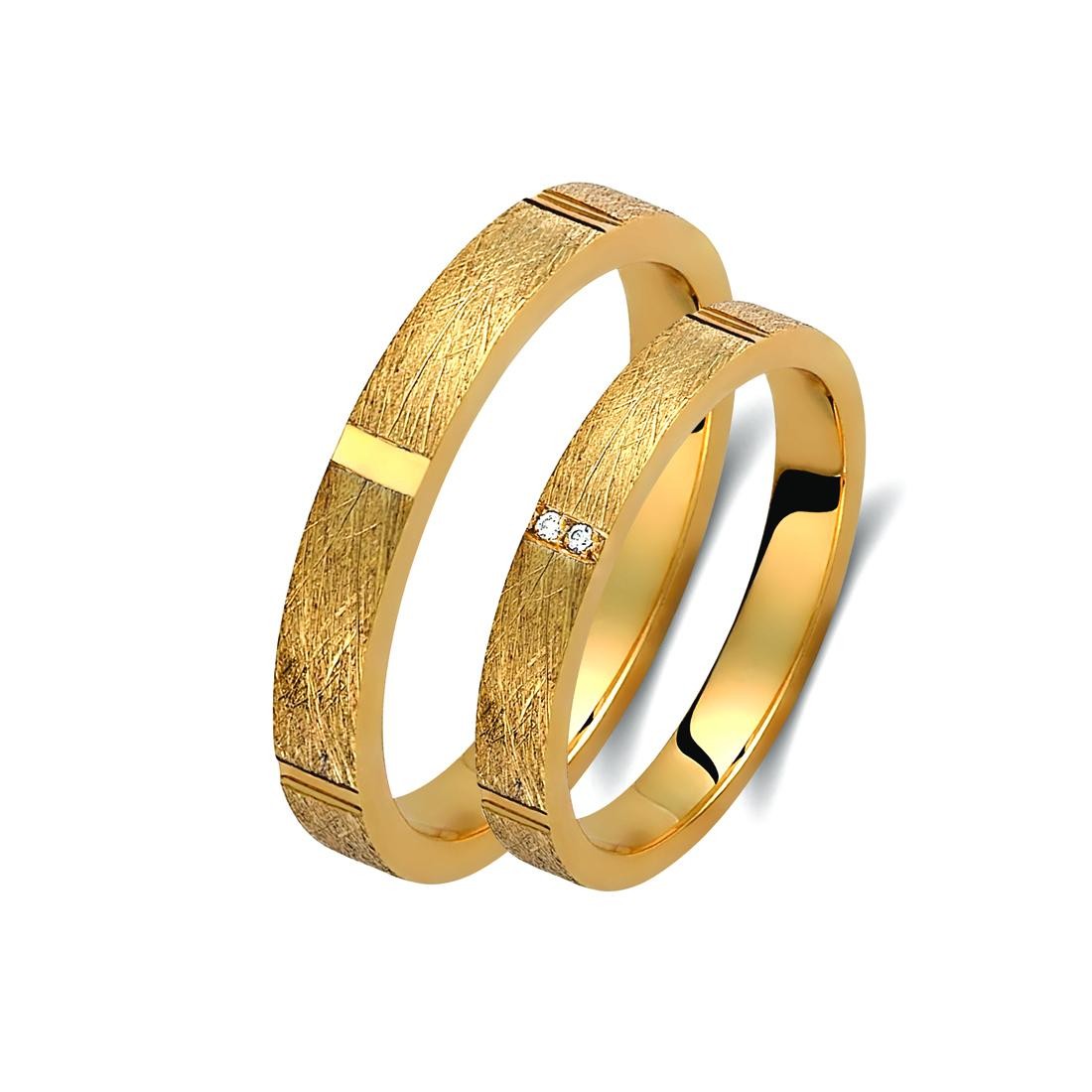 Ζευγάρι βέρες χρυσές 14 καρατίων, η γυναικεία με πέτρα ζιργκόν. Σχέδιο 379c-ca