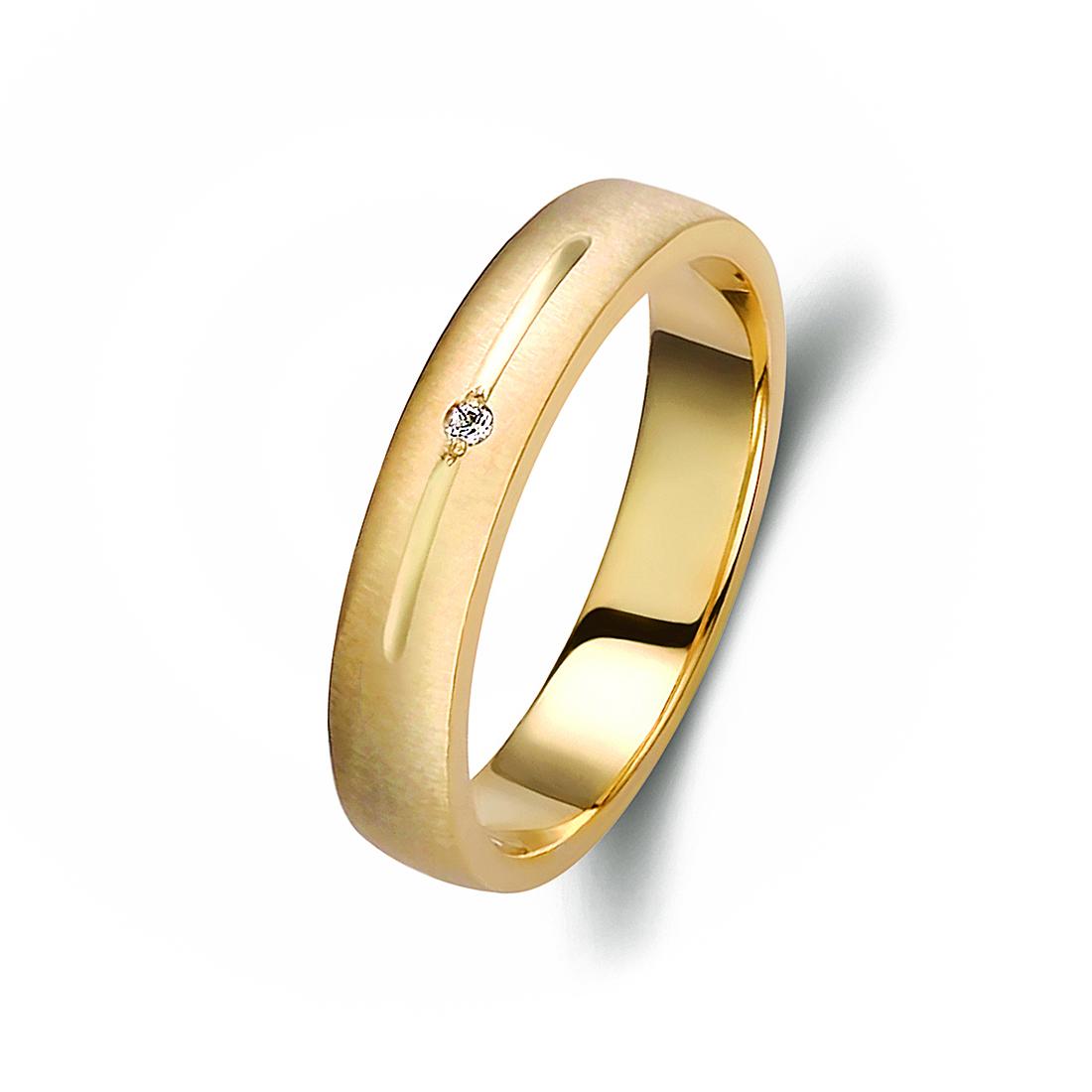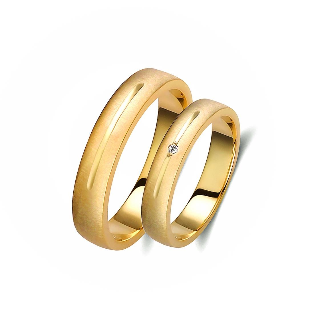 Ζευγάρι βέρες χρυσές 8 καρατίων, η γυναικεία με διαμάντι βάρους 0,015ct (μπριγιάν) και ποιότητα F/VS1.