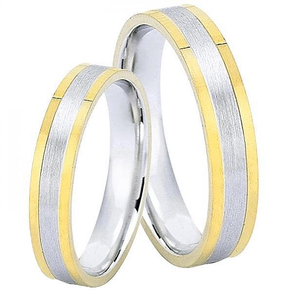 Ζευγάρι βέρες δίχρωμες από χρυσό και λευκόχρυσο, σε ice mat, 14 καρατίων. Σχέδιο 371a-aa