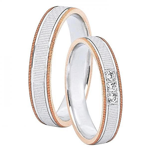 Βέρες Dekagold, δίχρωμες από ροζ χρυσό και λευκόχρυσο, 14 καρατίων (κ585), η γυναικεία με διαμάντι βάρους 0,015ct (μπριγιάν) και ποιότητα F/VS1.