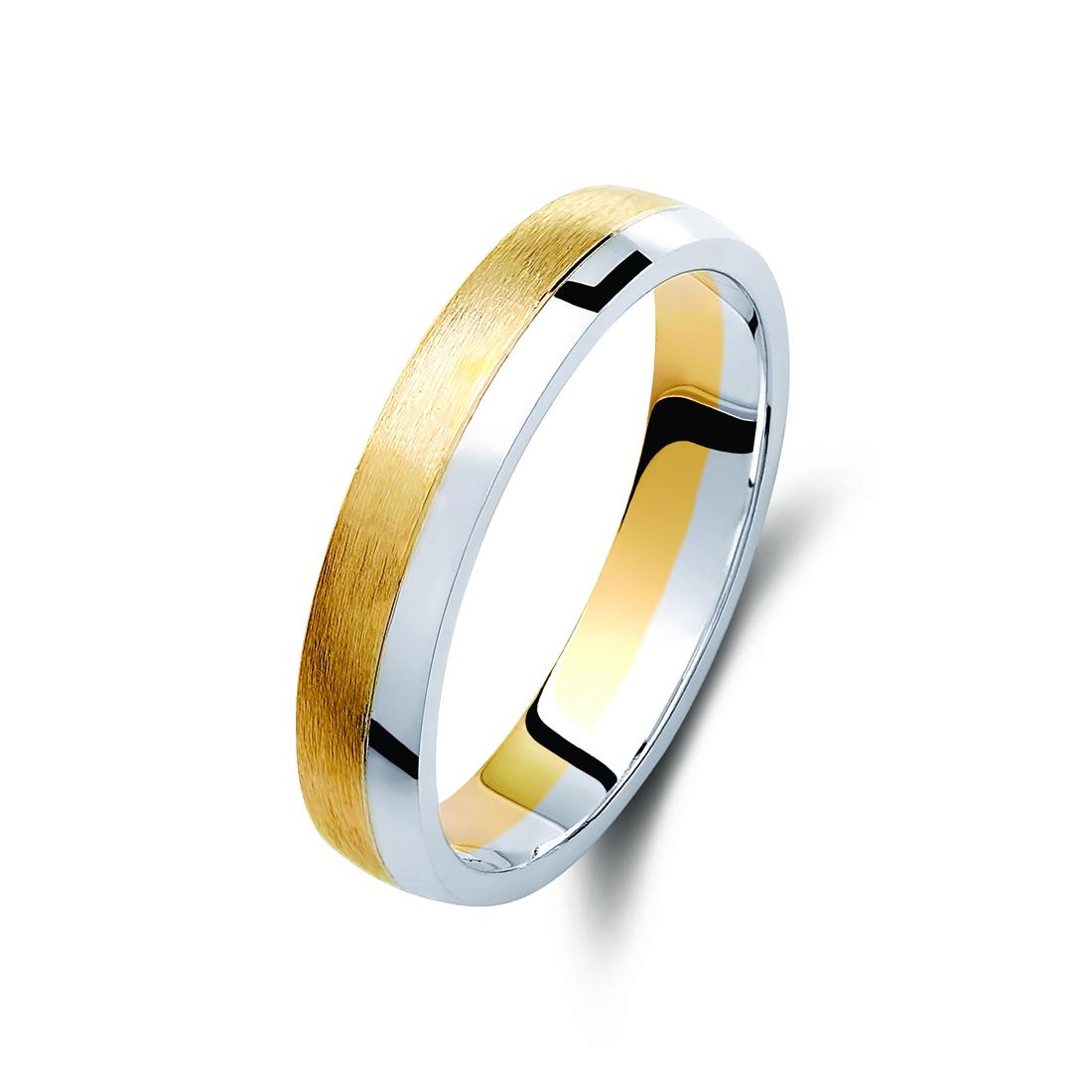 Ζευγάρι βέρες δίχρωμες από χρυσό και λευκόχρυσο, σε ice mat, 14 καρατίων. Σχέδιο 371a-aa
