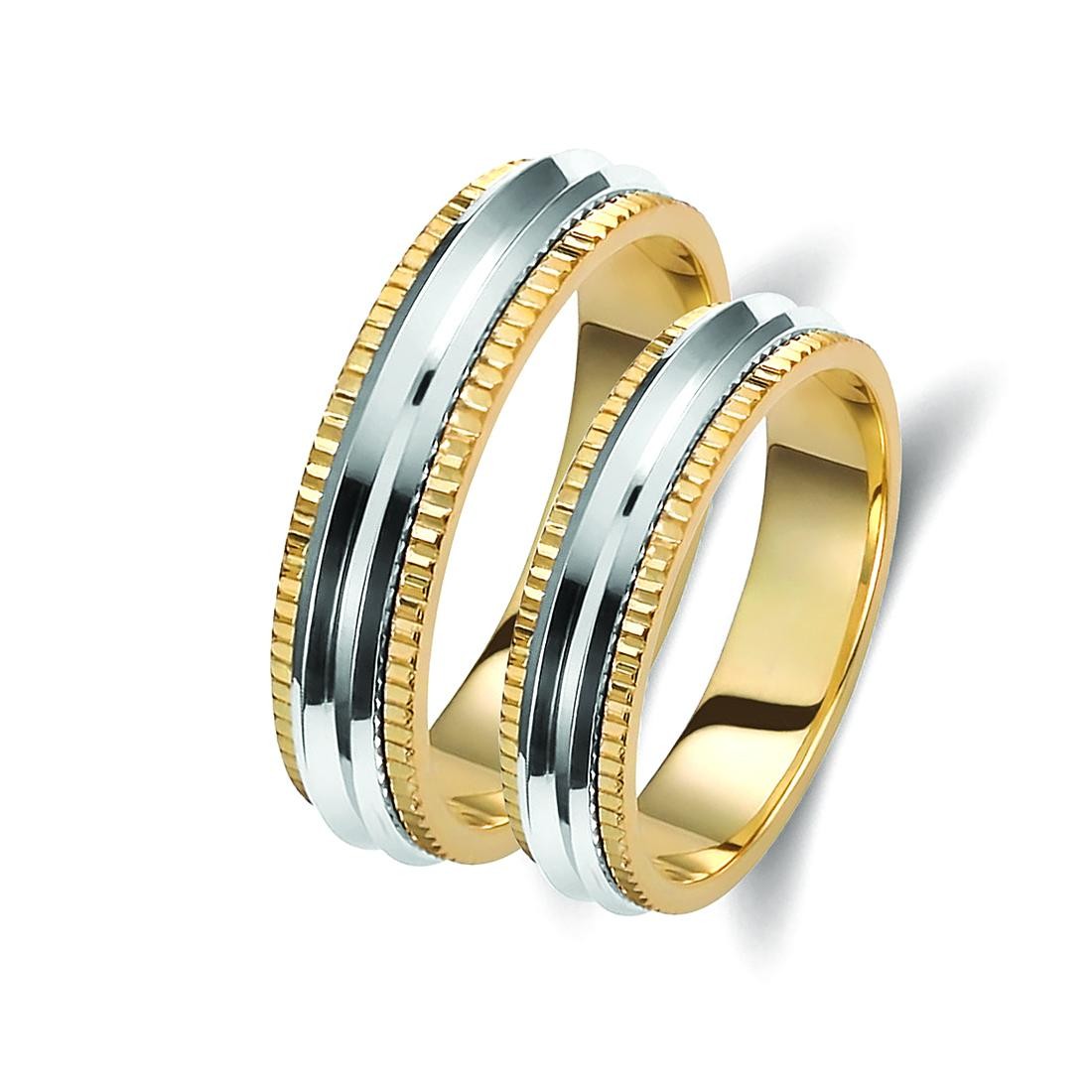 Ζευγάρι βέρες δίχρωμες από λευκό και κίτρινο χρυσό 14 καρατίων.