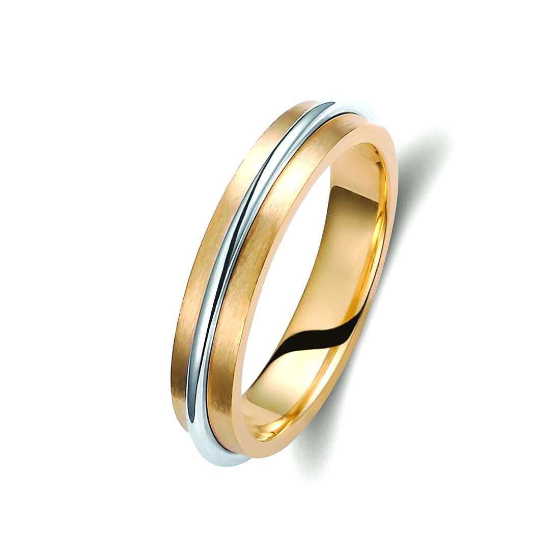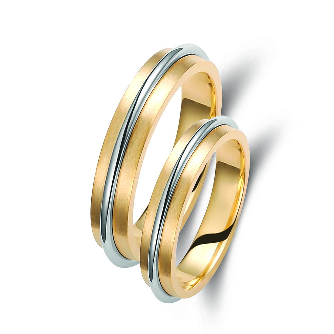 Ζευγάρι βέρες δίχρωμες από χρυσό και λευκόχρυσο, σε ice mat, 14 καρατίων. Σχέδιο 371a-aa