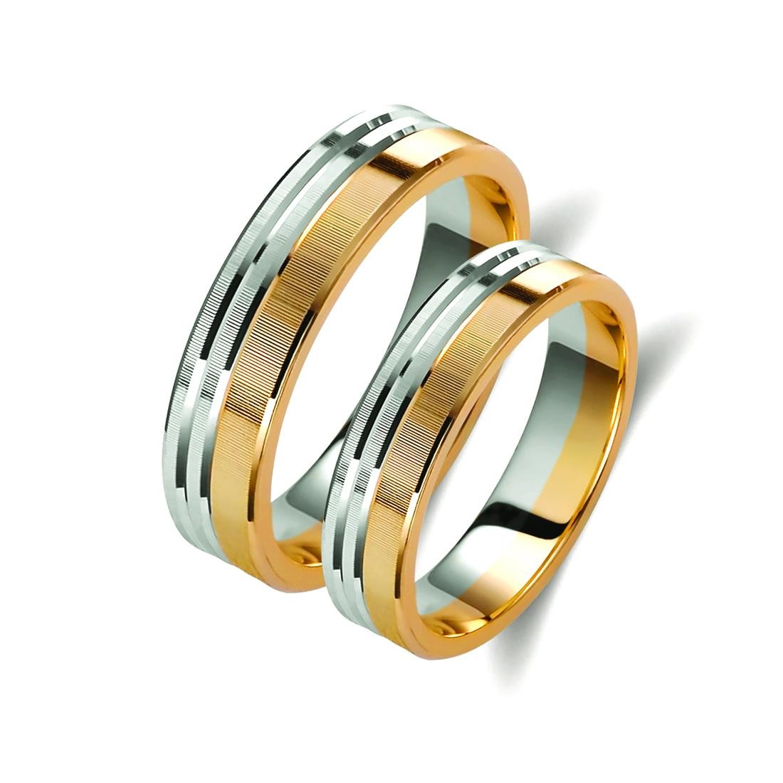 Ζευγάρι βέρες δίχρωμες από λευκό και κίτρινο χρυσό 14 καρατίων.
