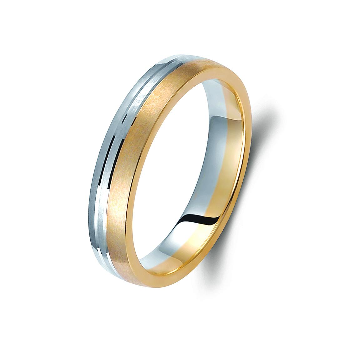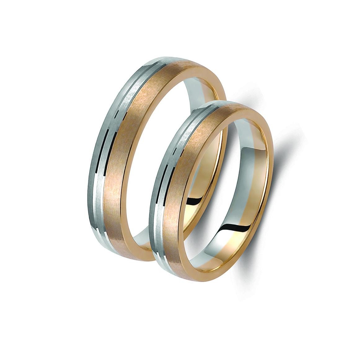 Ζευγάρι βέρες δίχρωμες από χρυσό και λευκόχρυσο, σε ice mat, 14 καρατίων. Σχέδιο 371a-aa