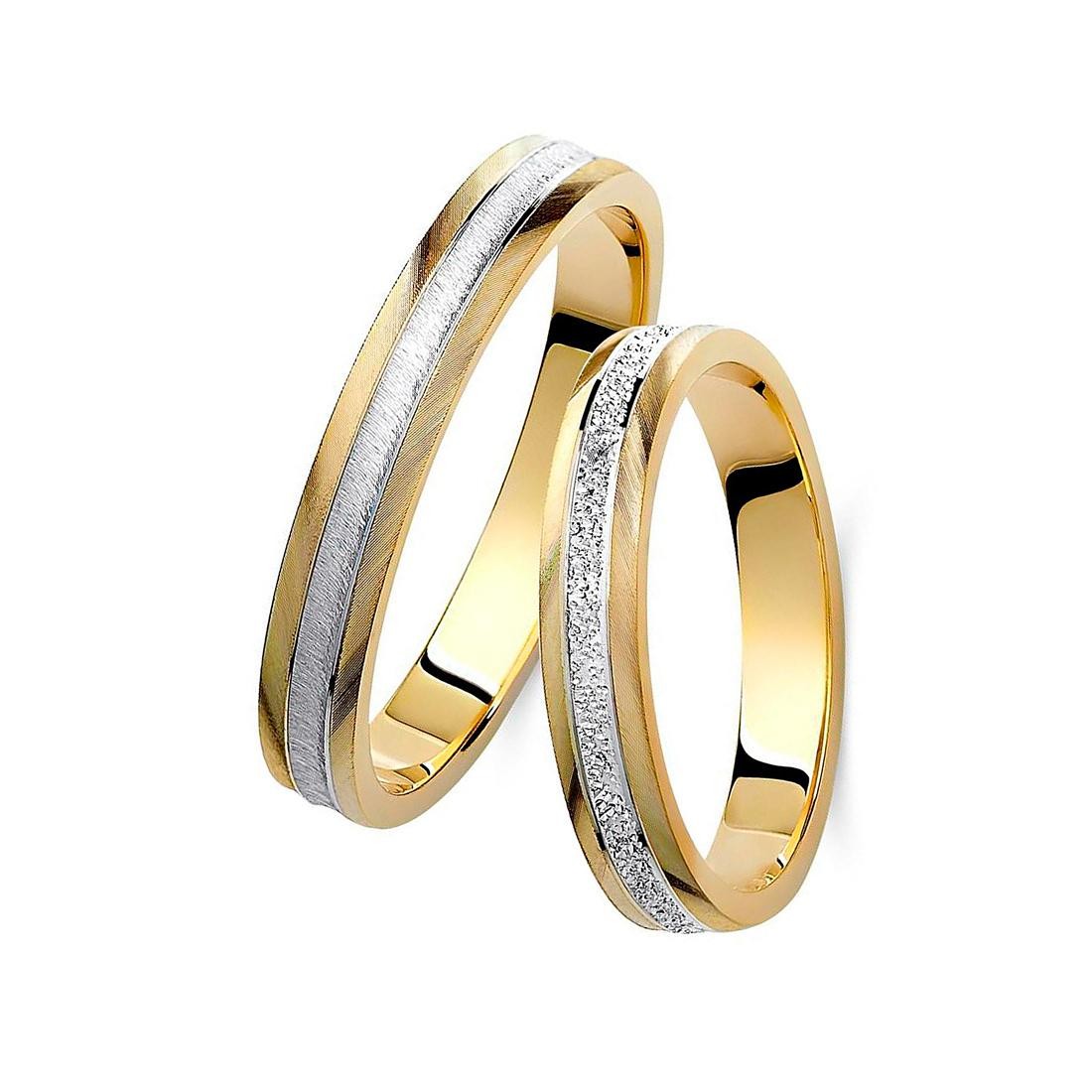 Ζευγάρι βέρες δίχρωμες από λευκό και κίτρινο χρυσό 14 καρατίων.
