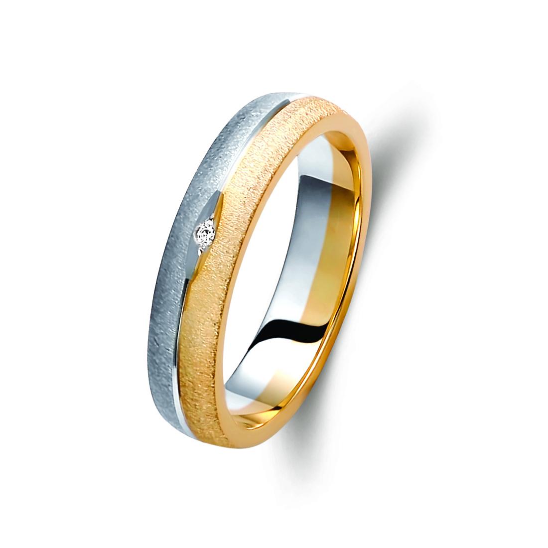 Ζευγάρι βέρες δίχρωμες χρυσό και λευκόχρυσο 8 καρατίων, η γυναικεία με διαμάντι βάρους 0,015ct (μπριγιάν) και ποιότητα F/VS1.