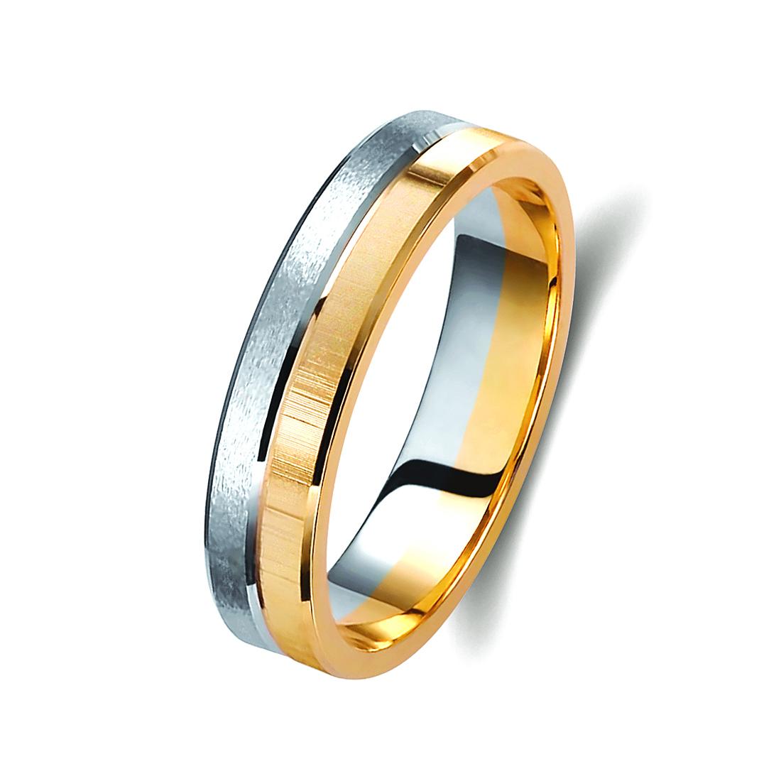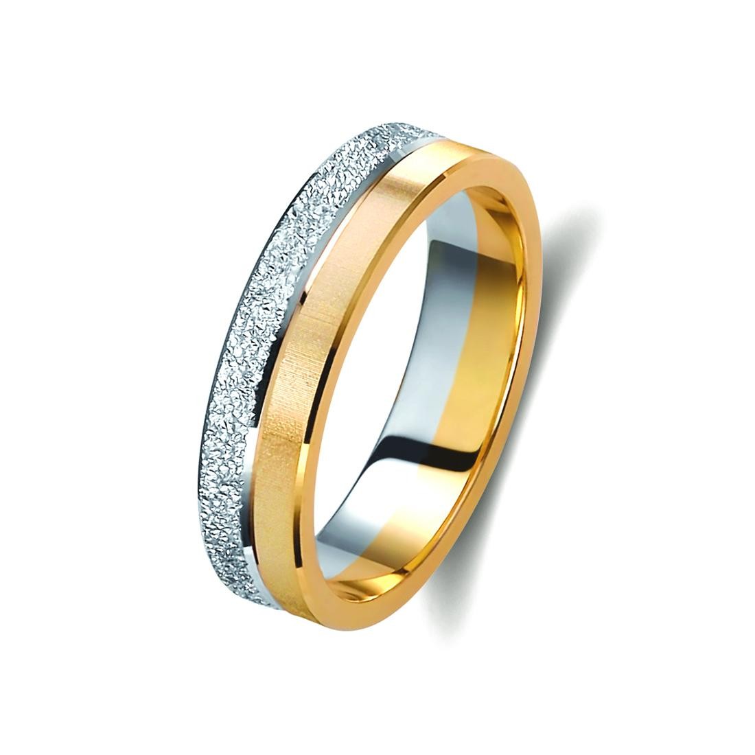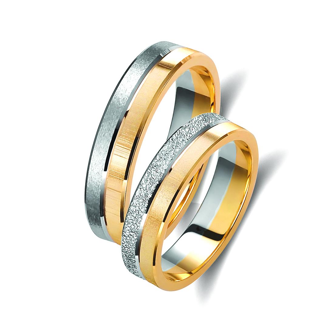 Ζευγάρι βέρες δίχρωμες από χρυσό και λευκόχρυσο, σε ice mat, 14 καρατίων. Σχέδιο 371a-aa