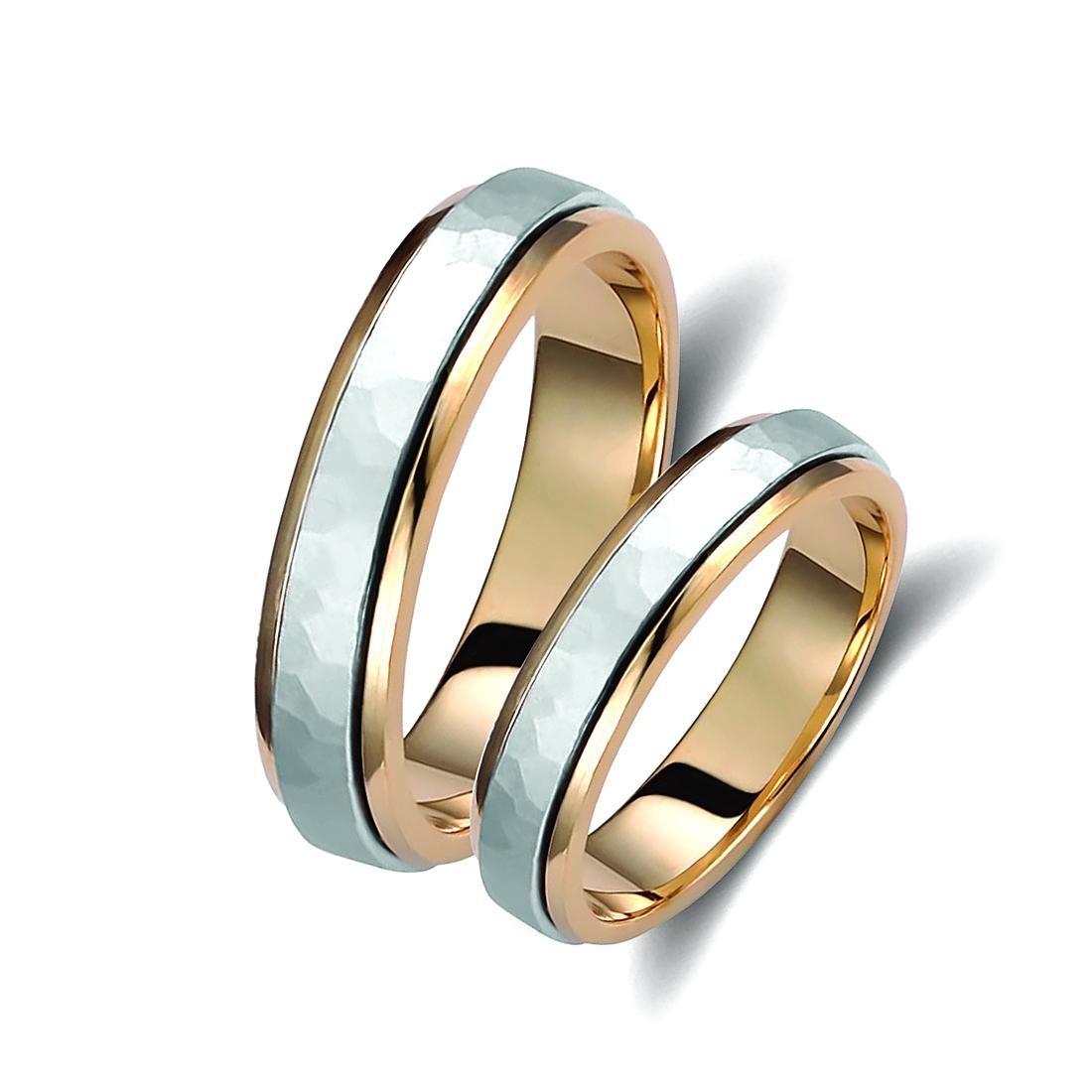 Ζευγάρι βέρες δίχρωμες από χρυσό και λευκόχρυσο, σε ice mat, 14 καρατίων. Σχέδιο 371a-aa