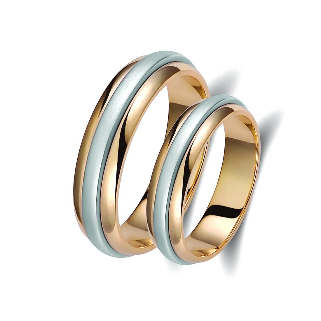 Ζευγάρι βέρες δίχρωμες ροζ χρυσό και λευκόχρυσο 14 καρατίων. Σχέδιο 044p-pa